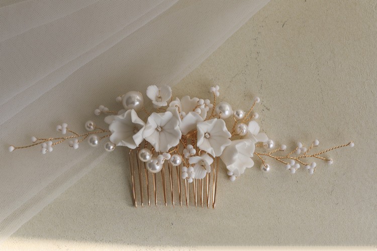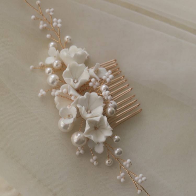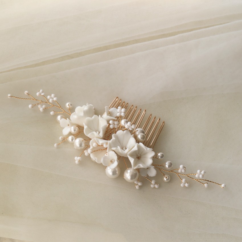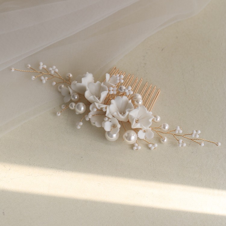 Ceramic Flower Hair Comb Bride Simplicity