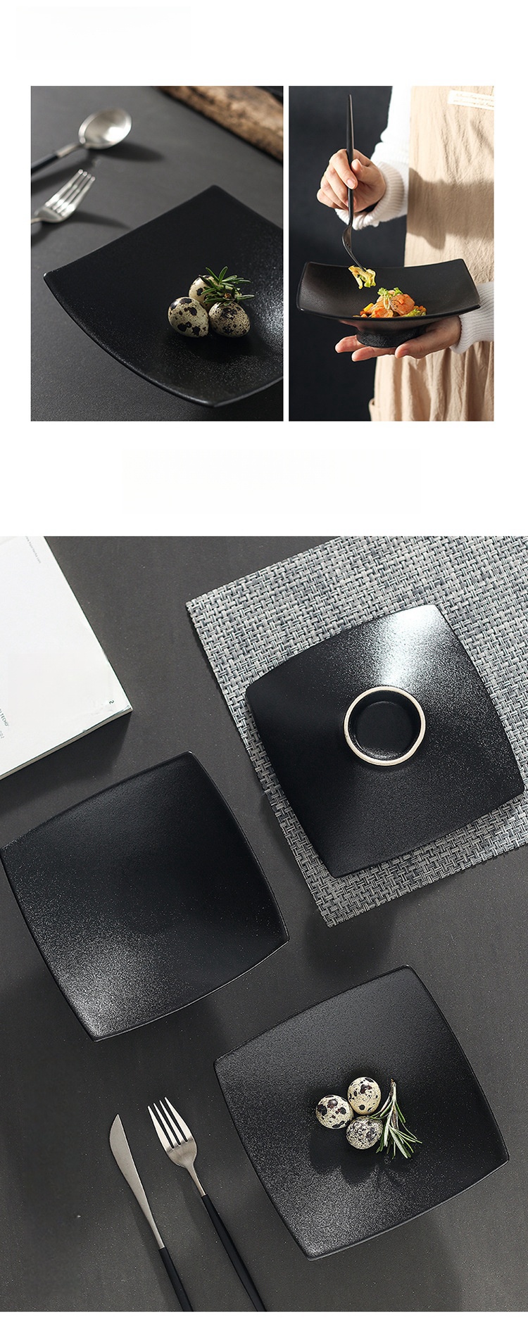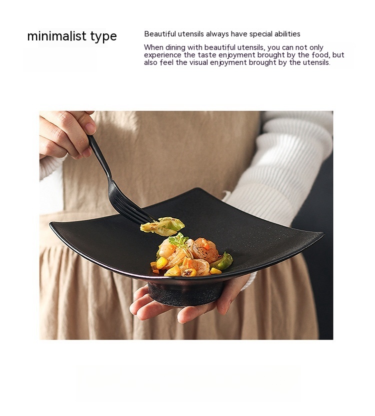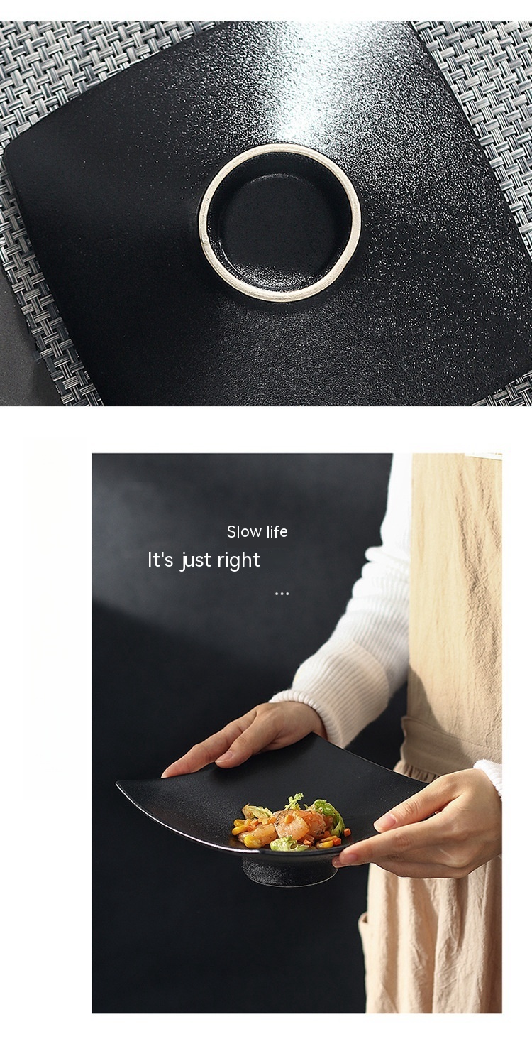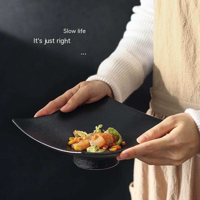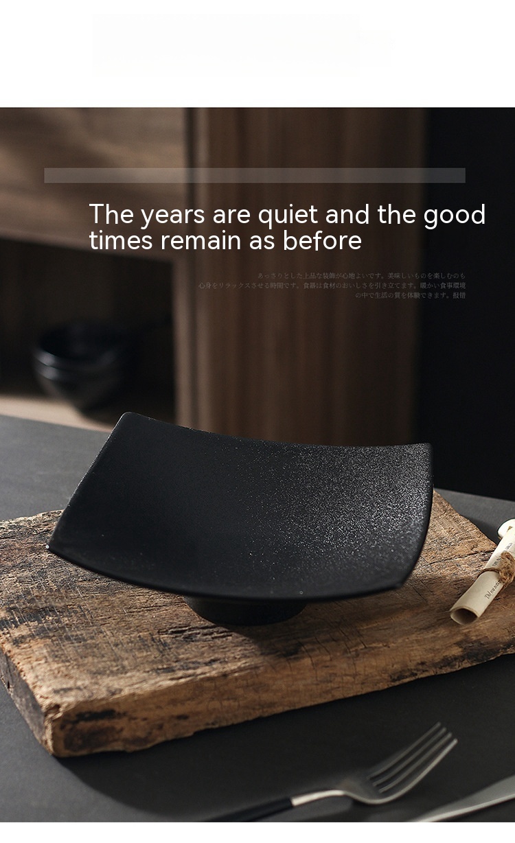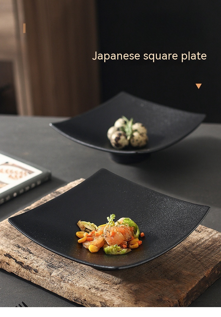 Ceramic Frosted Plate Japanese-style Square High Leg Dinner Plate Tableware Creative Snacks Plate Household Ins Style Salad Dish