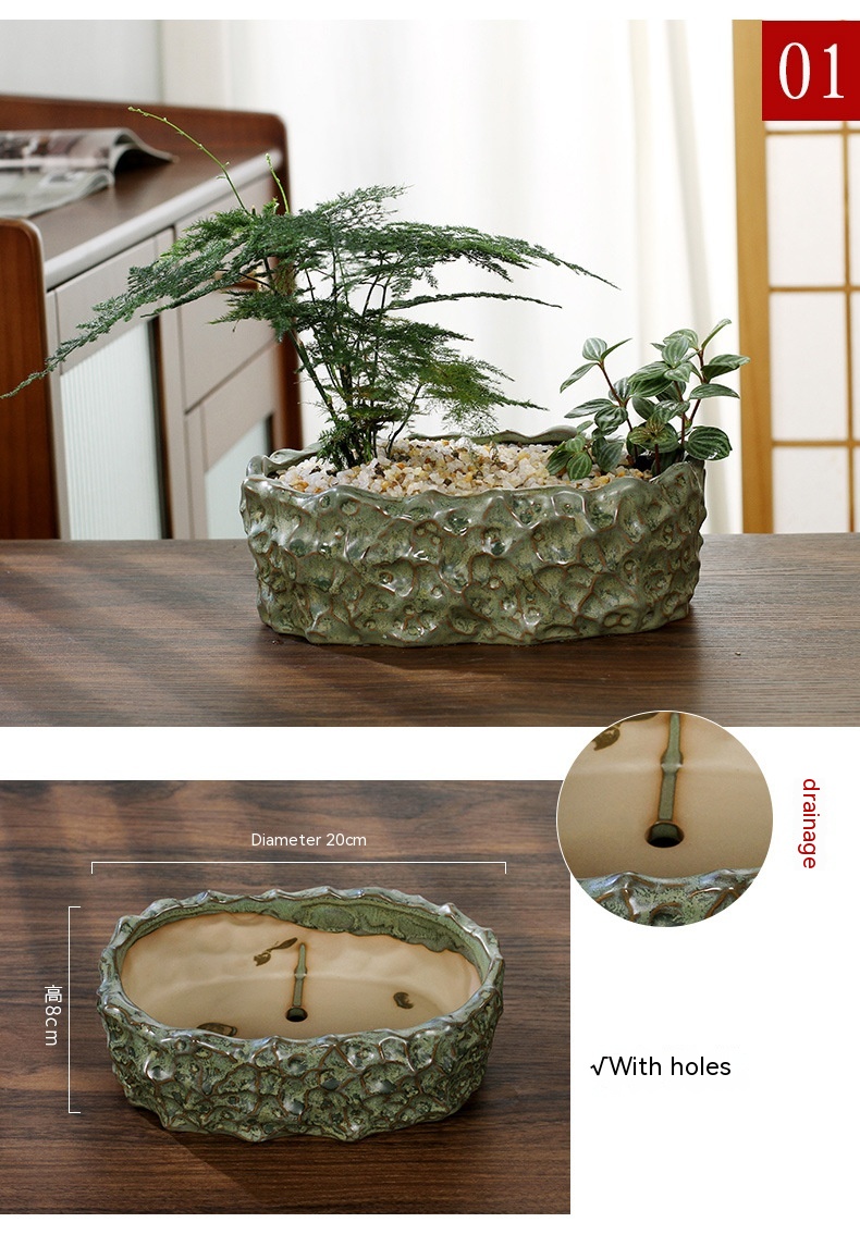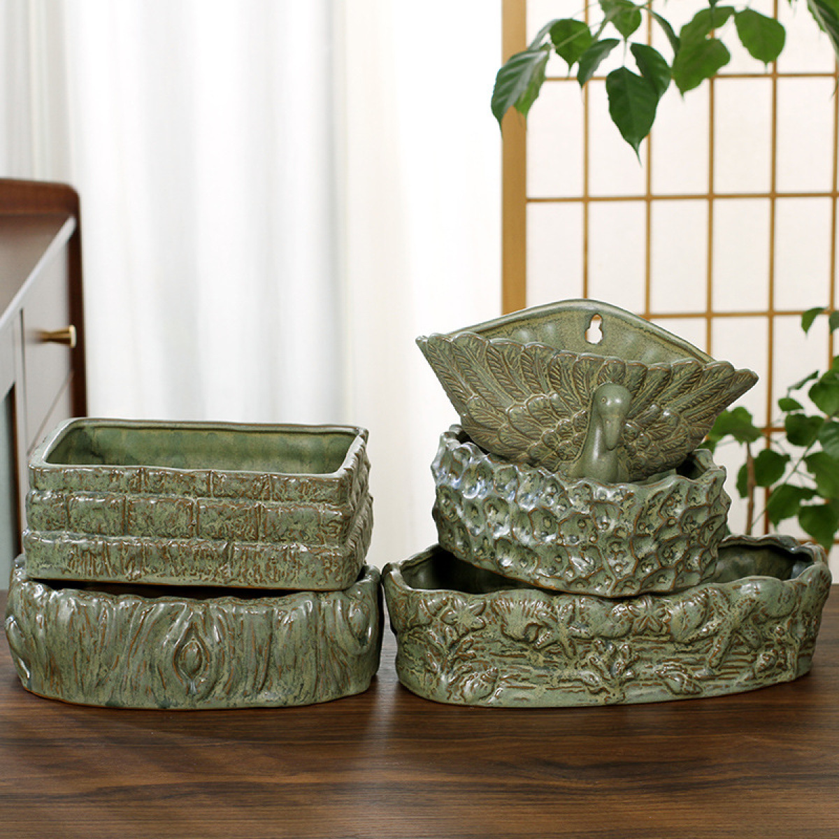 Color: green imitating stone without holes, Green imitating stone with holes, green bird without holes, Green Tree pile without holes, Green Tree pile with holes, Green four corners without holes, Green Four Corners with holes, green round basin without holes, green round basin with holes, the blue strip has no holes, and the blue strip has holes