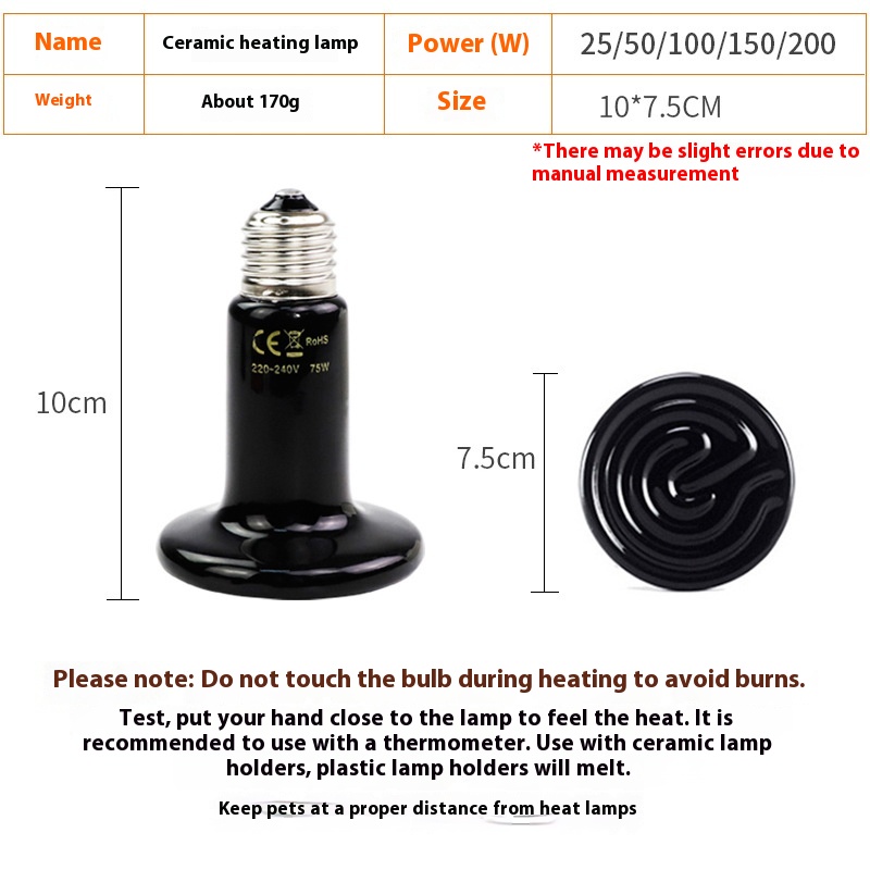 Specifications Black 220V 25W, Black 220V 50W, Black 220V 75W, Black 220V 100W, Black 220V 150W, Black 220V 200W, Black 110V 25W, Black 110v 50W, Black 110V 75W, Black 110V 100W, Black 110V 150W, Black 110V 200W
