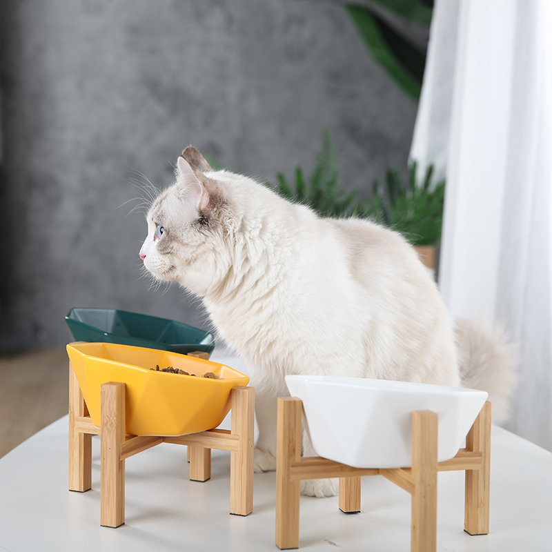 Diamond oblique mouth high-foot cat bowl