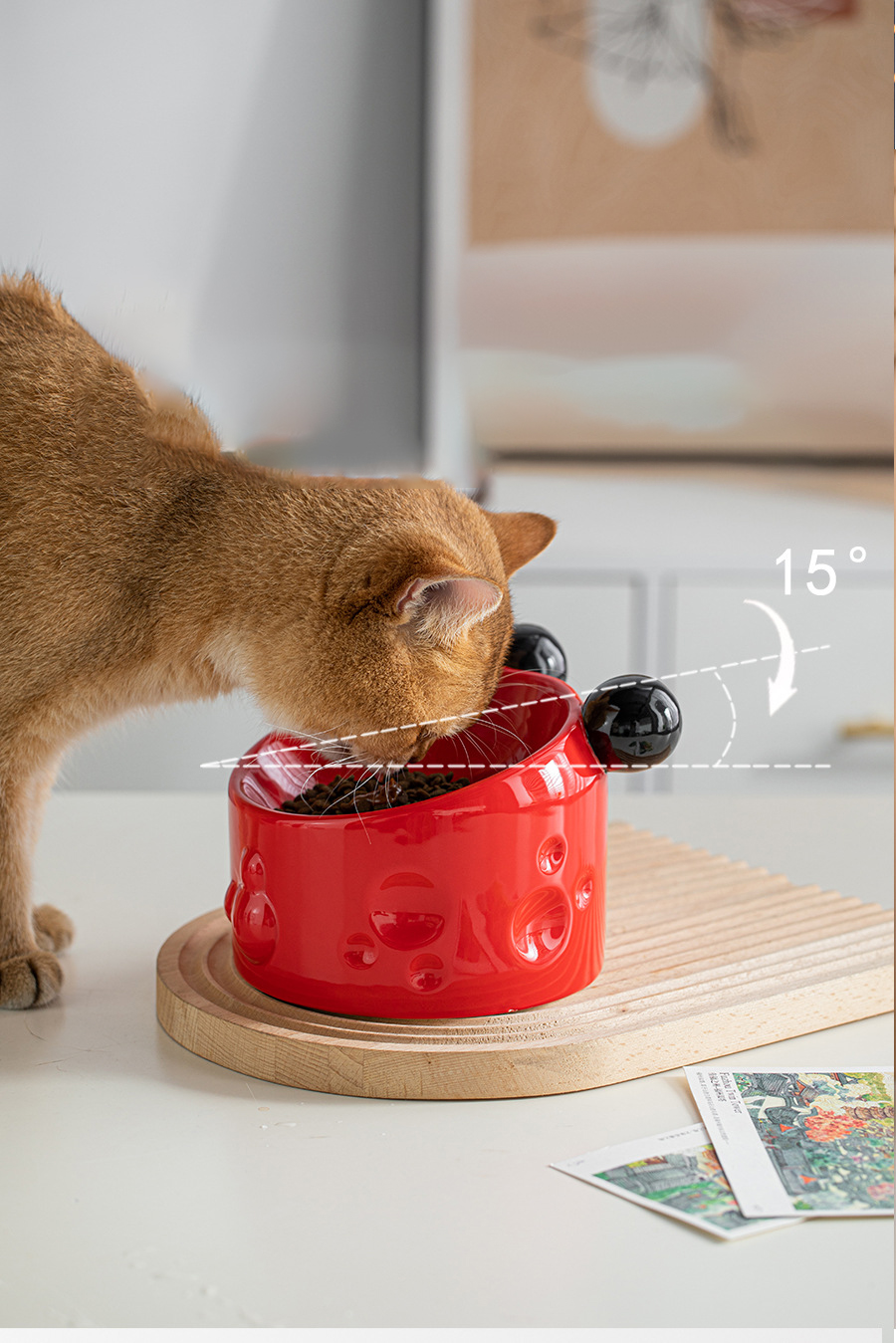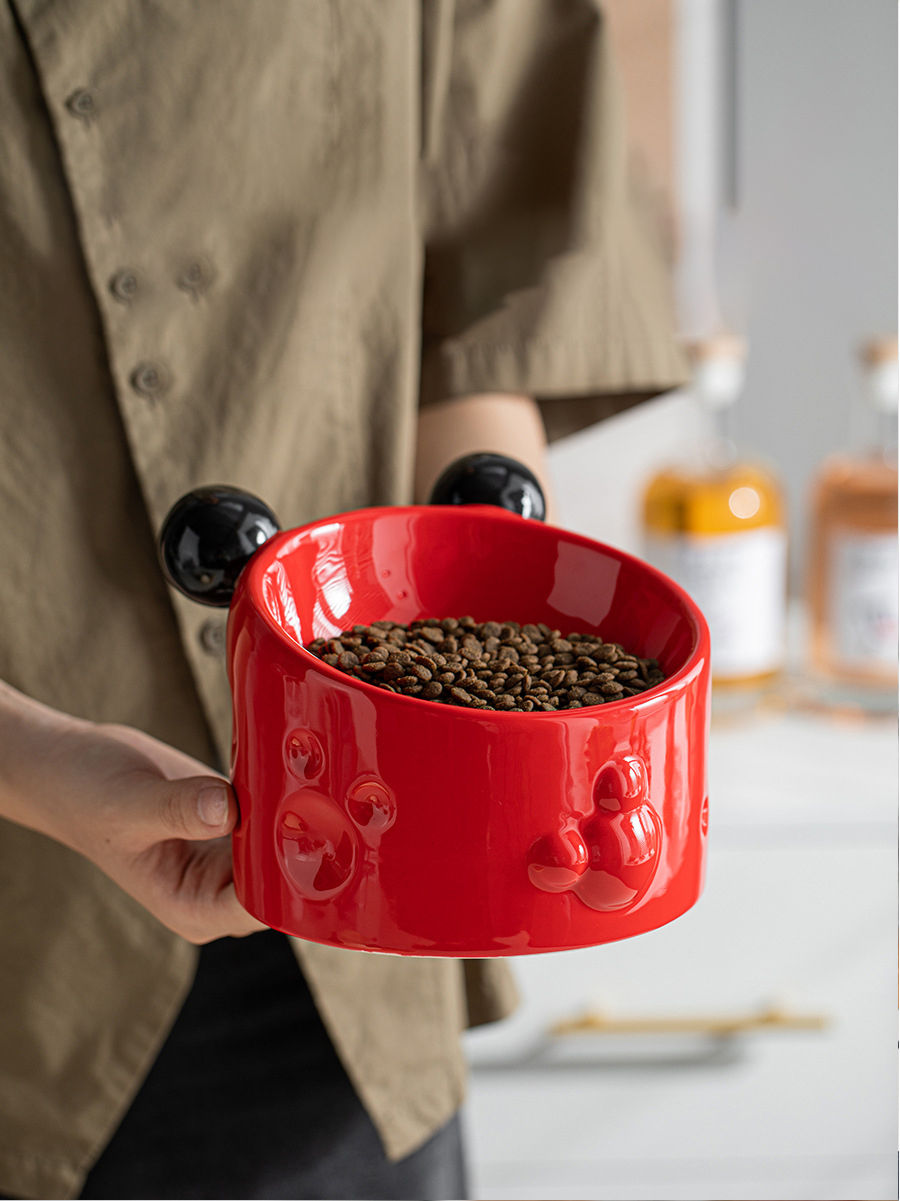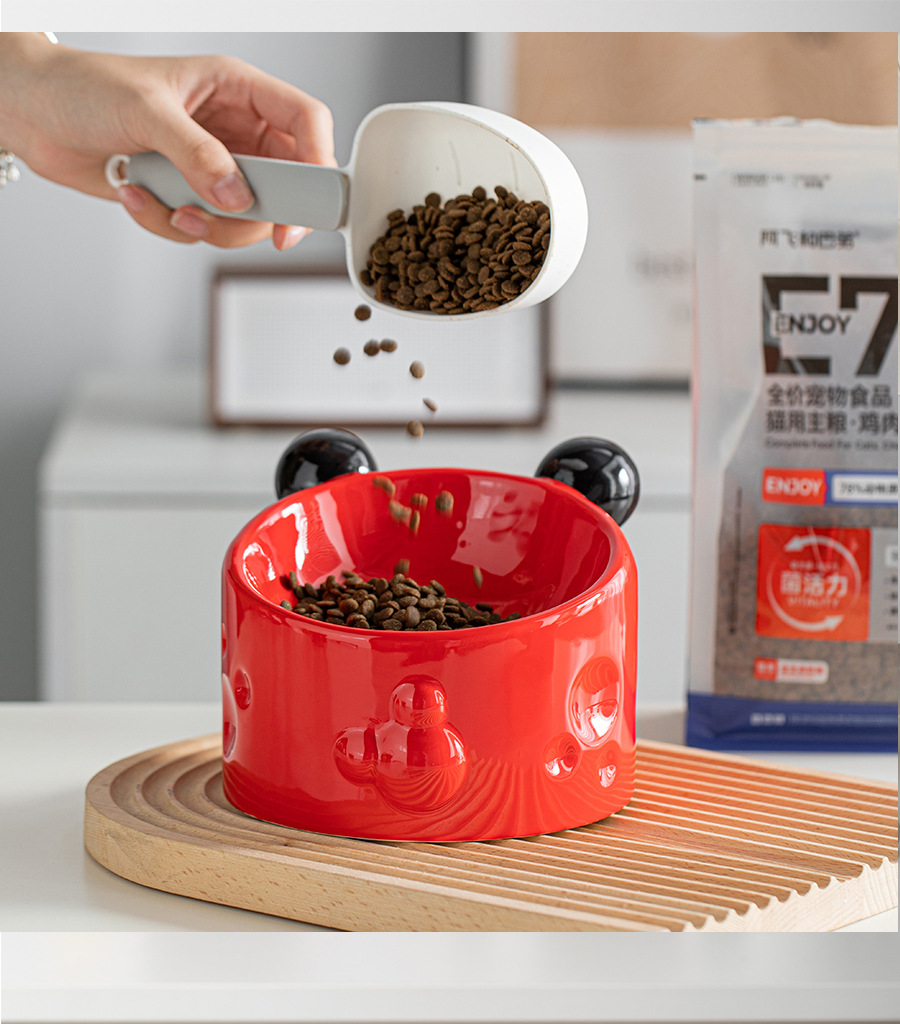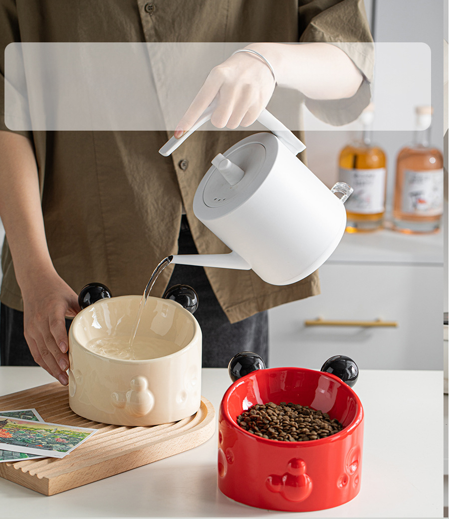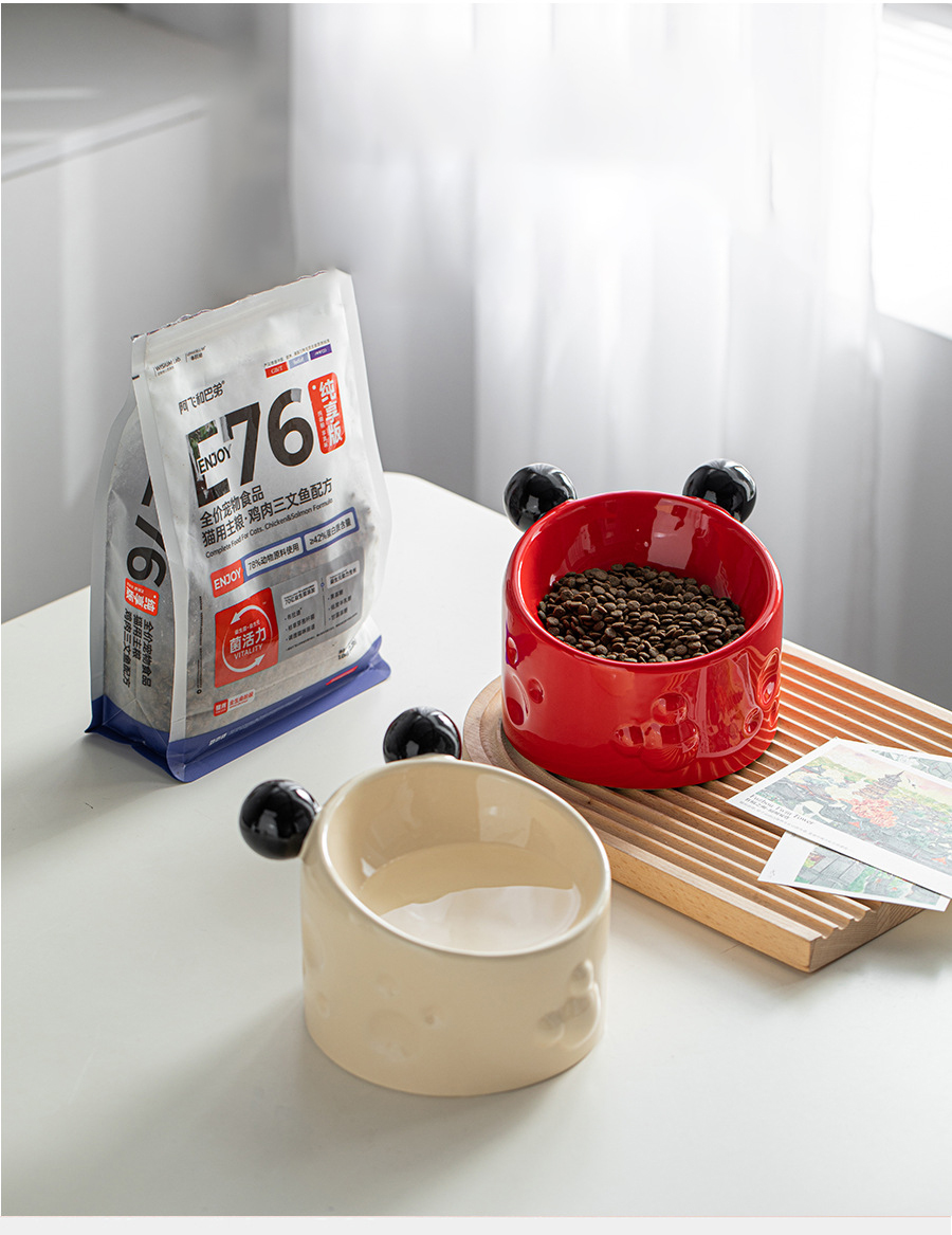 Ceramic High-footed Pet Cat Bowl With Neck Protection, Double Bowl Anti-spill Food And Water Dish For Cats And Dogs, Tilted Stand To Protect Cervical Spine