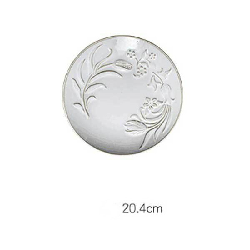 8 inch embossed flower plate-white, 10 inch embossed flower plate-white, 8 inch embossed flower plate-blue, 10 inch embossed flower plate-blue
