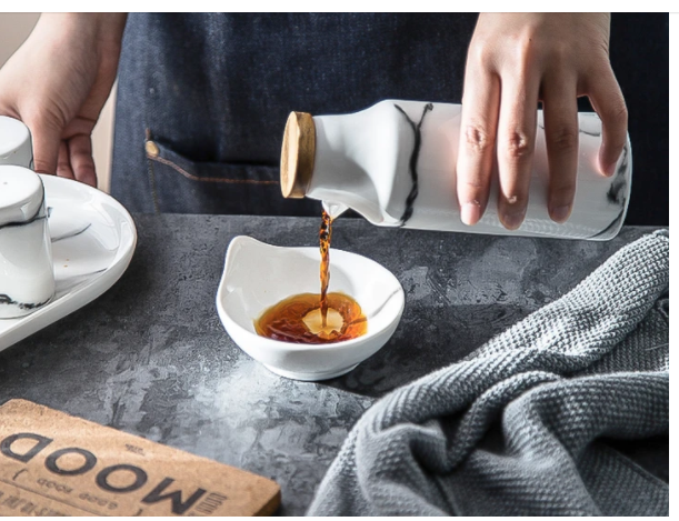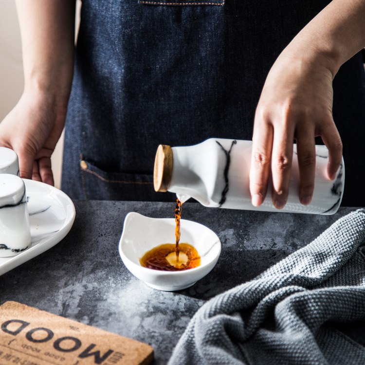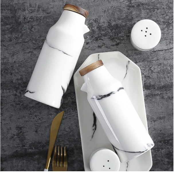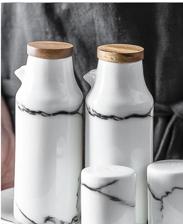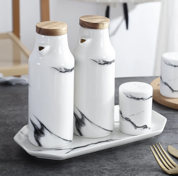 Capacity: Single marbled oil bottle, 2 pepper jars, 5 sets of flavoring set