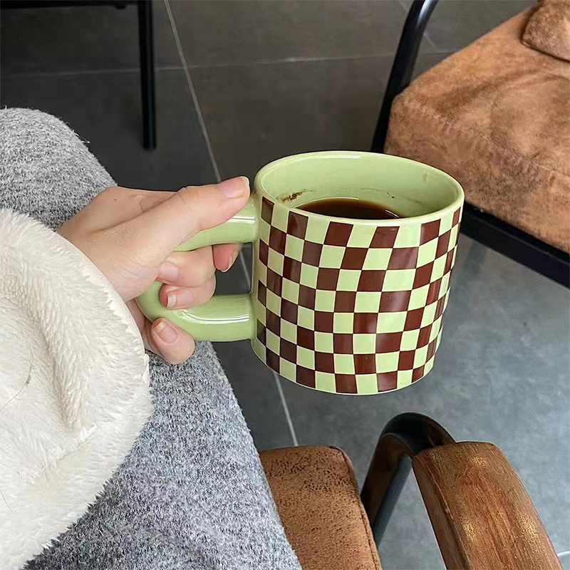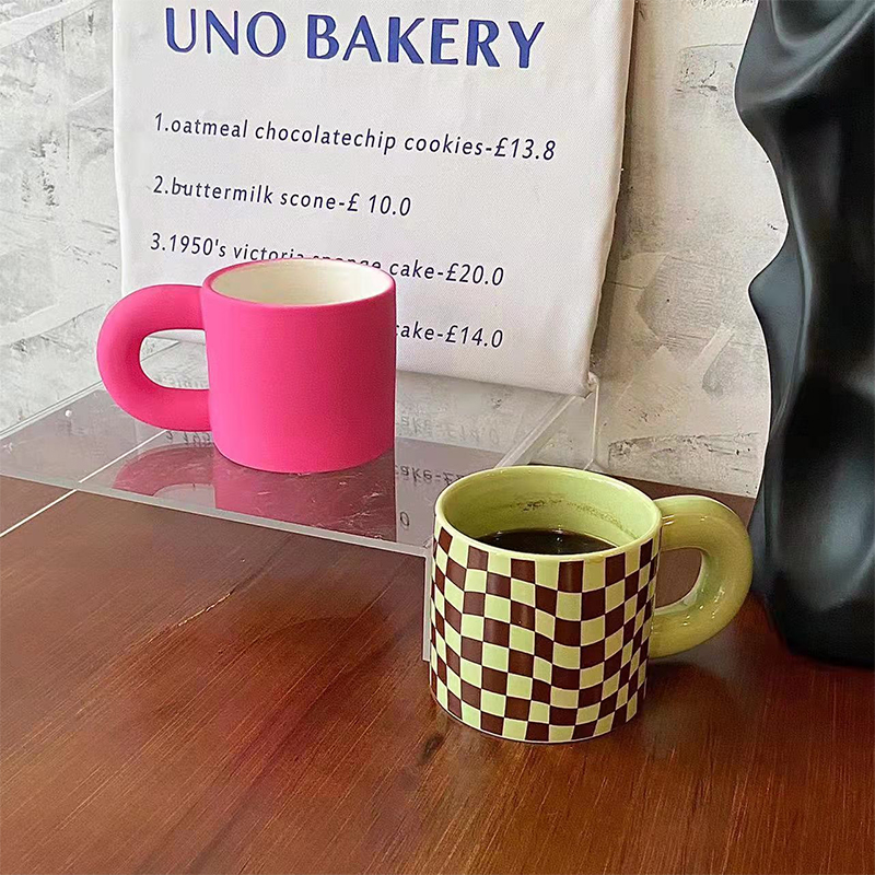 Color: Pink, green checkerboard, milky dots, splash ink