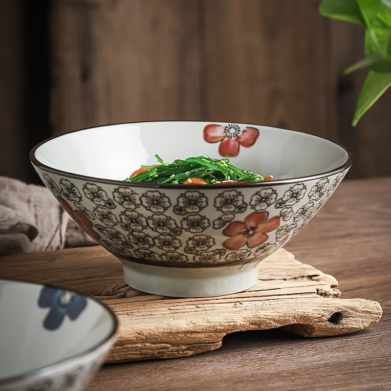 Color classification: 7.5-inch trumpet bowl red rich, 7.5-inch trumpet Bowl Blue rich, 7.5-inch trumpet bowl auspicious flowers