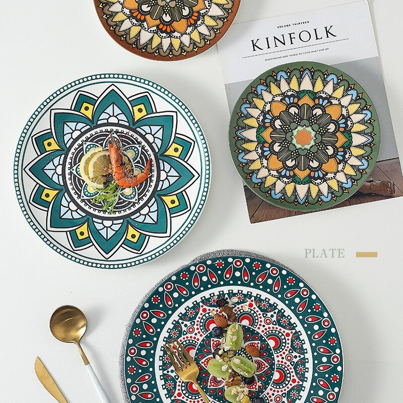 Name: Ceramic Dinner PlateElement: BohemianCraft: modern printingMaterial: more than 45 percent bone meal and bone china