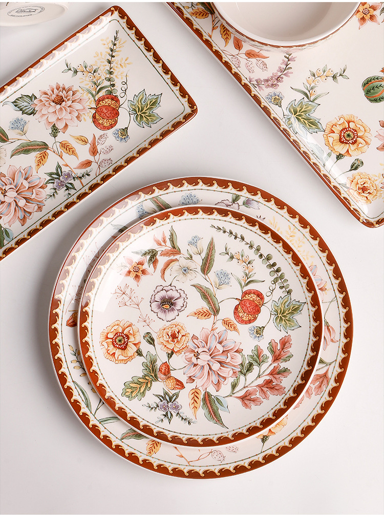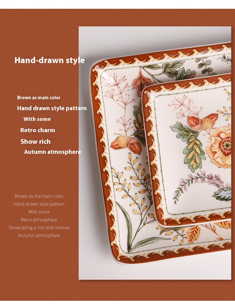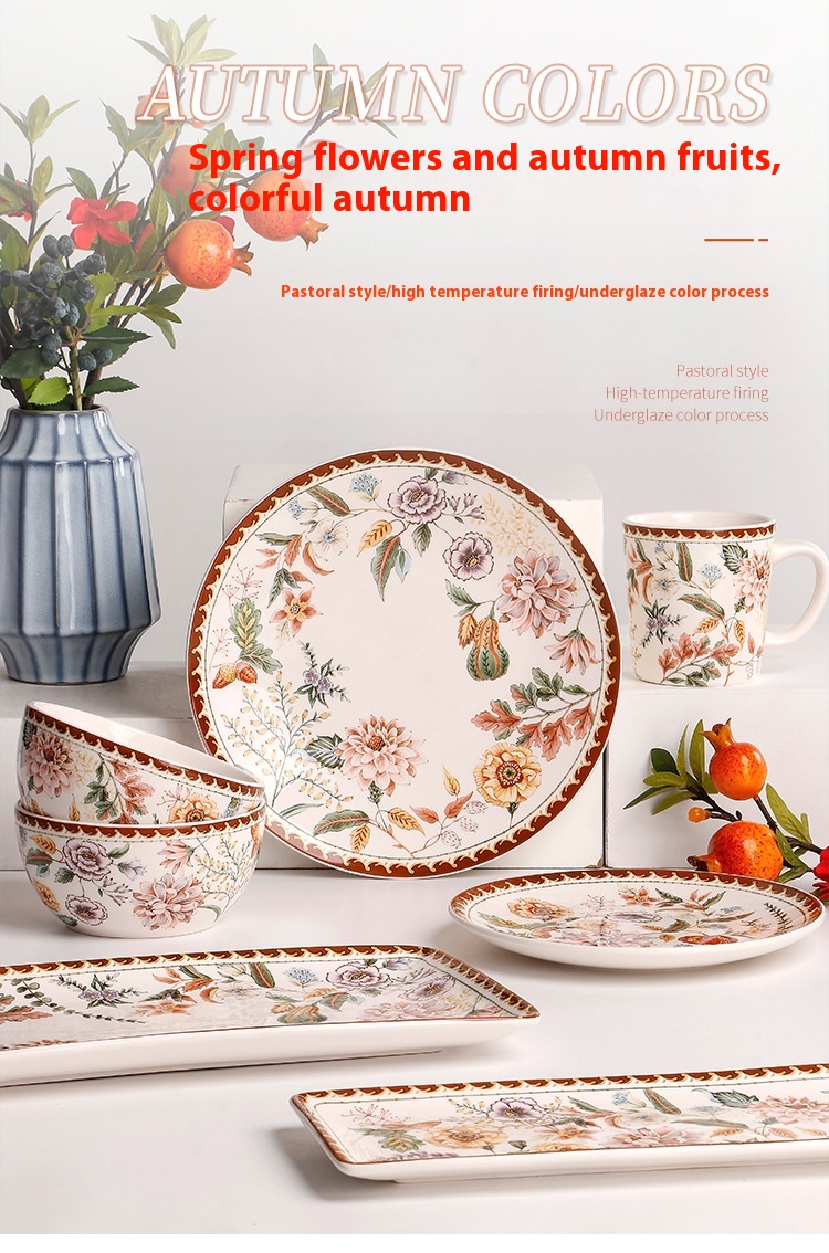 Color: Colorful autumn-11 inch large plate, colorful autumn-9 inch small set, colorful autumn-6 inch bowl, colorful autumn-mug, colorful autumn [boxed four-piece set]]]], colorful autumn-large 14-inch rectangular plate, colorful autumn-small 14-inch rectangular plate, colorful autumn-4.7-inch bowl