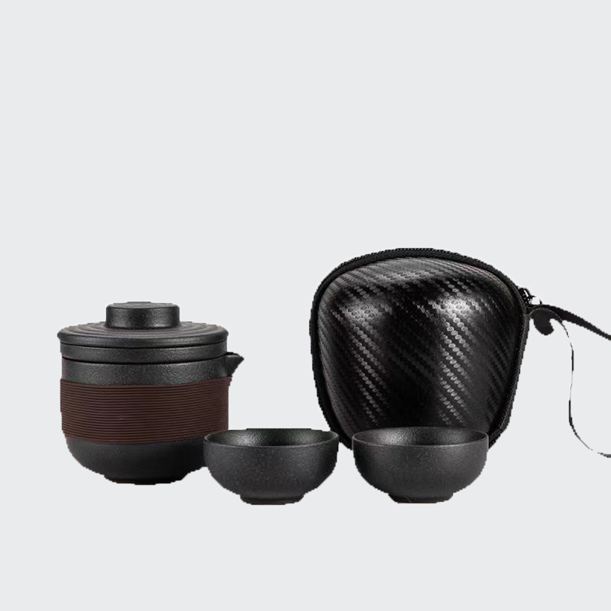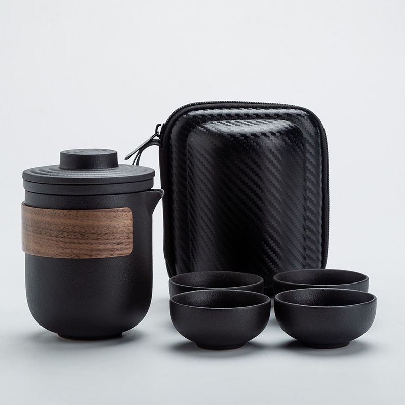 Name: Black pottery travel tea set