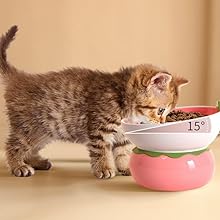 Ceramic Raised Cat Food Bowl - Pink Elevated Dish For Indoor Cats With Anti-Vomiting And Spinal Protection