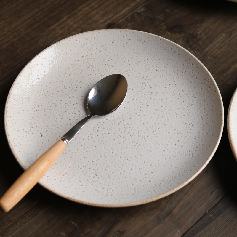Ceramic Retro Ins Weathered Effect Pitted 8-inch Plate Japanese-style Plate, Flat Plate