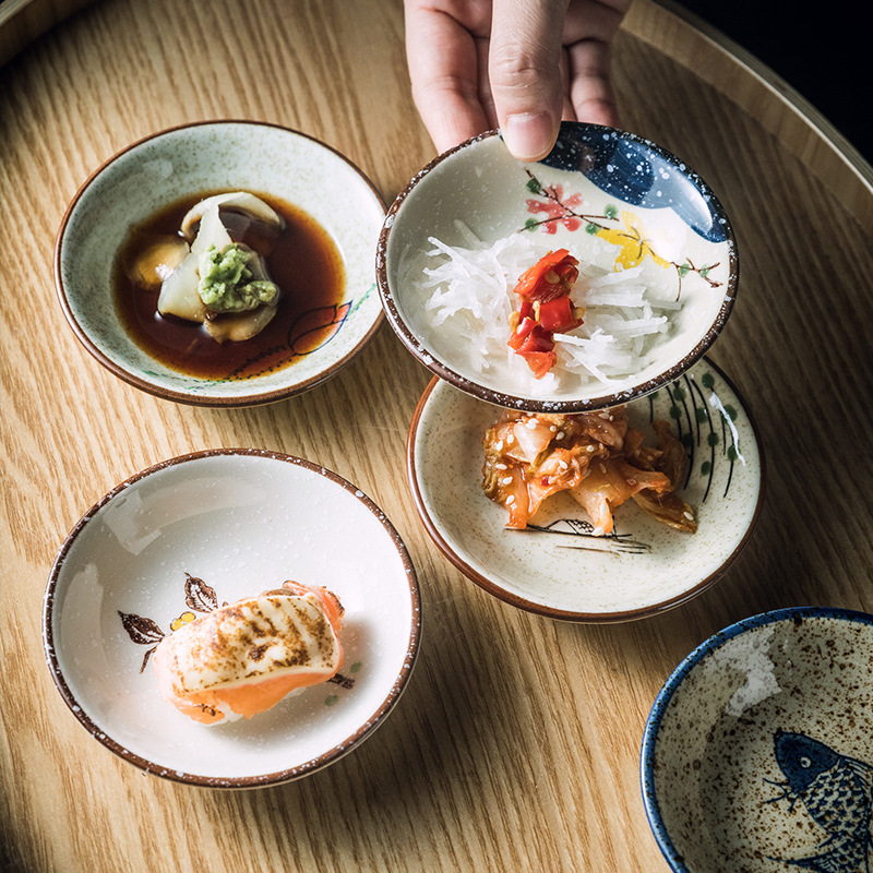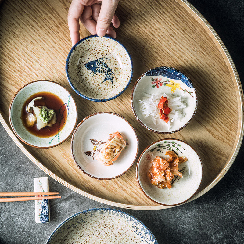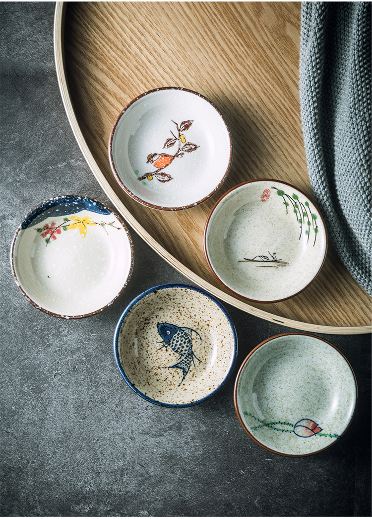 Color: round sauce plate-Willow, round sauce plate-clear color, round sauce plate-flower and bird, round sauce plate-happy fish, round sauce plate-and