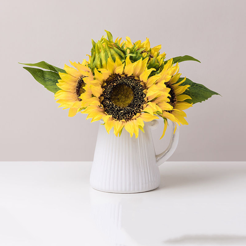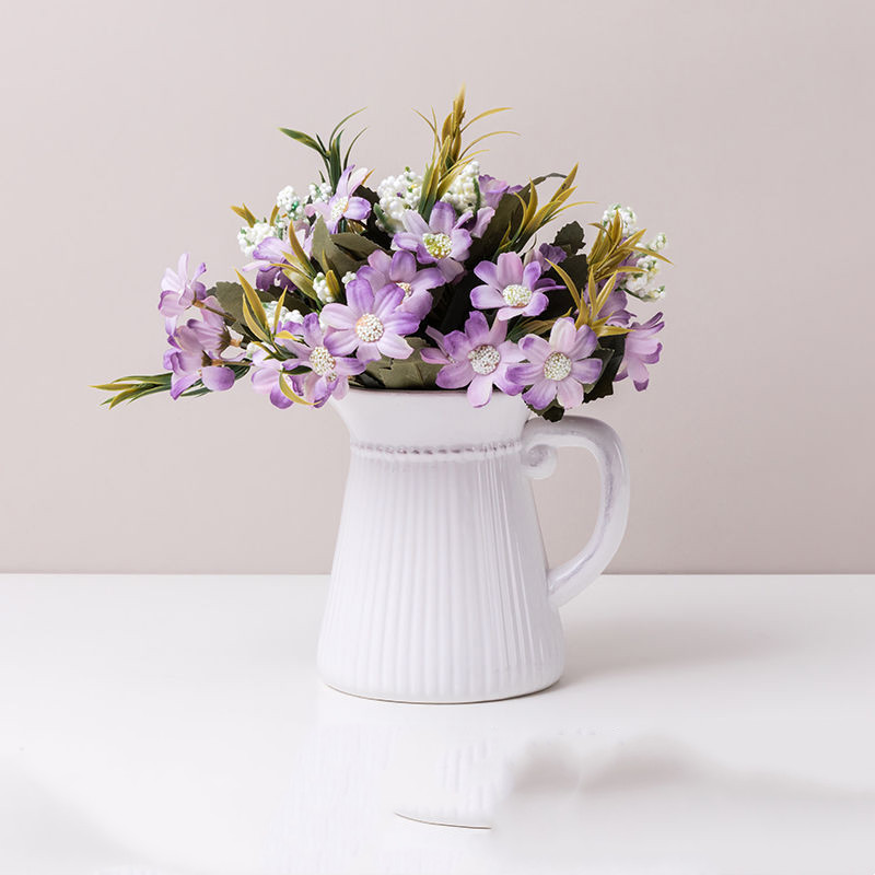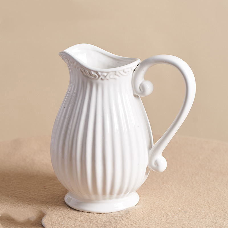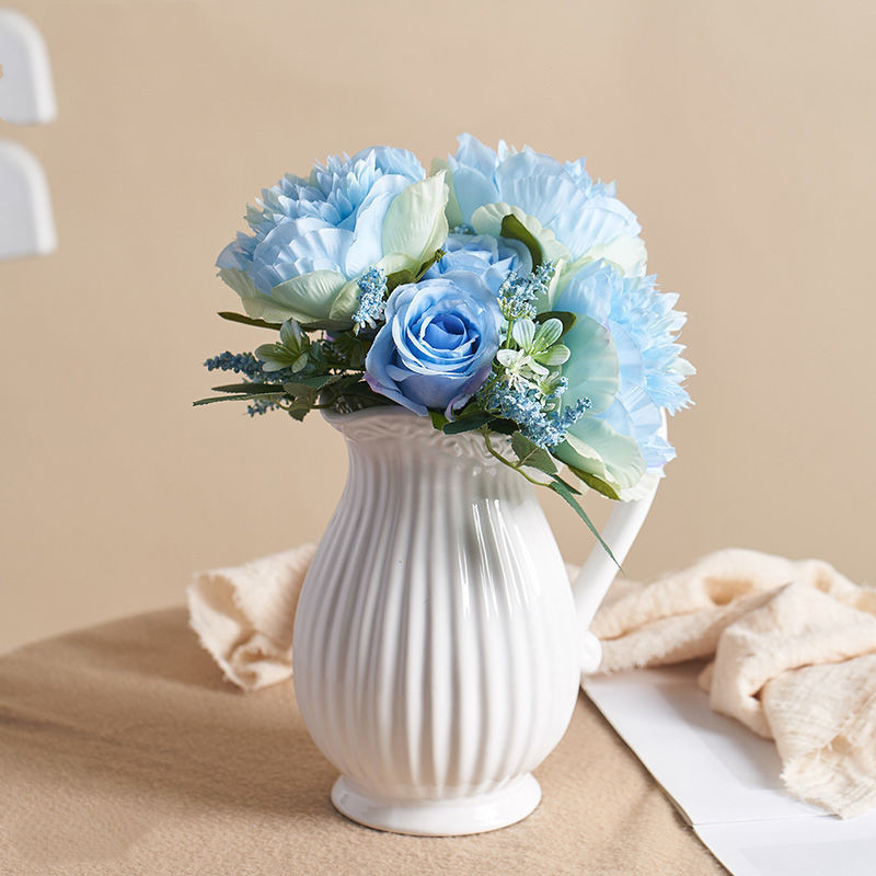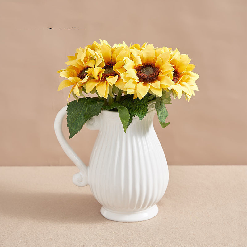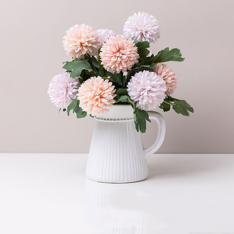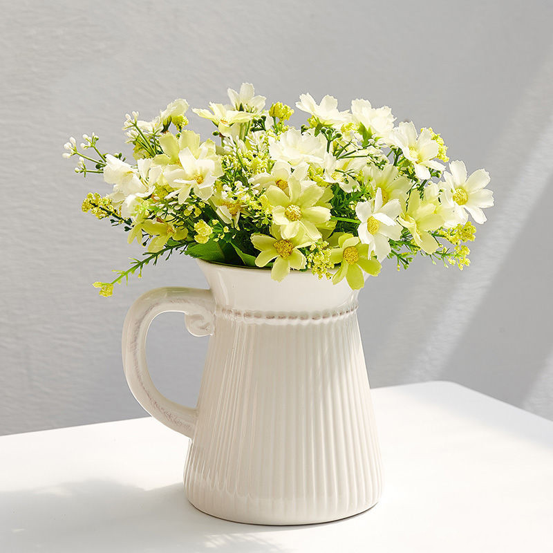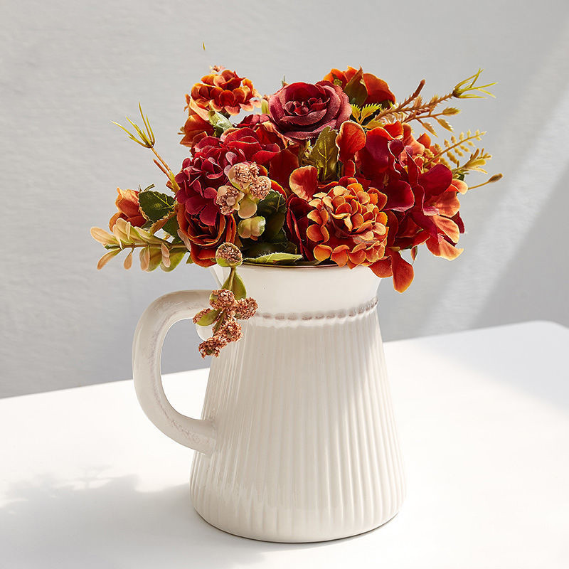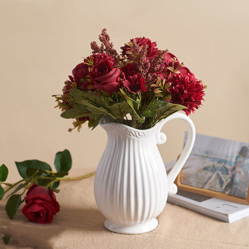 The creamy white vase reveals a touch of elegance and low-key, and the details are portrayed in a western style and elegant, and it is very beautiful with the green leaf floral art.