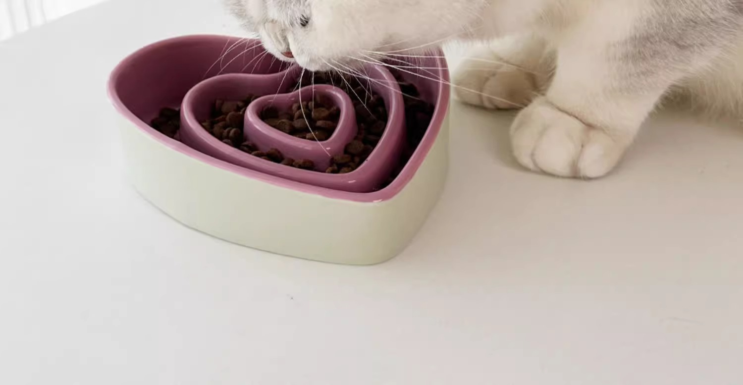 Ceramic Slow Food Bowl For Small And Medium Dogs Slow Anti-choking Food Bowl Love Bowl To Eat Protects The Cervical Spine Dog Food Bowl