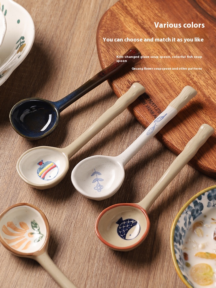 Color classification: small colored fish soup spoon, small blue fish soup spoon, galsang flower soup spoon, little red flower soup spoon, little yellow flower soup spoon, little blue flowers soup spoon, Kiln baked green soup spoon, Kiln baked blue soup spoon
