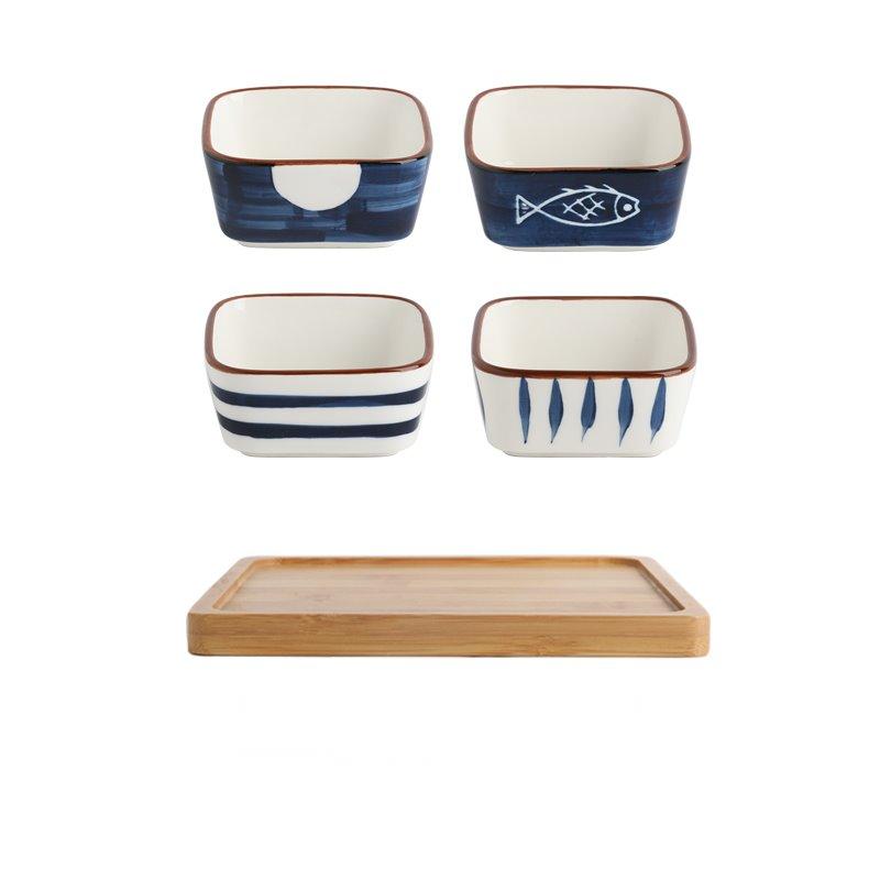 Color classification: 6 grid snack tray set (one pattern for each), 4 grid snack tray set (White leaf + orchid grass + small 3 grid snack tray set (White leaf + small fish + blue fish - square, white leaf - square, line - square, blue grass - square, tic-tac-toe - square, maple leaf - square,2 grid tray (with troughs), 3 trays (with troughs),4 trays (with troughs), 6 trays (with troughs), 2 snack trays set (White leaf + bluegrass), 2 snack trays set (tic-tac-toe + Maple leaf), 2 snack trays set (small fish + lines), Leaf forks - 6 trays