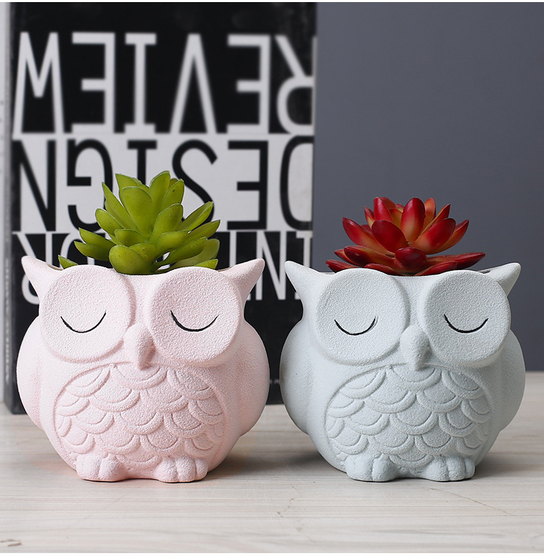 Color: Frosted owl flowerpot White, frosted owl flowerpot light pink, frosted owl flowerpot light green, frosted owl flowerpot light blue