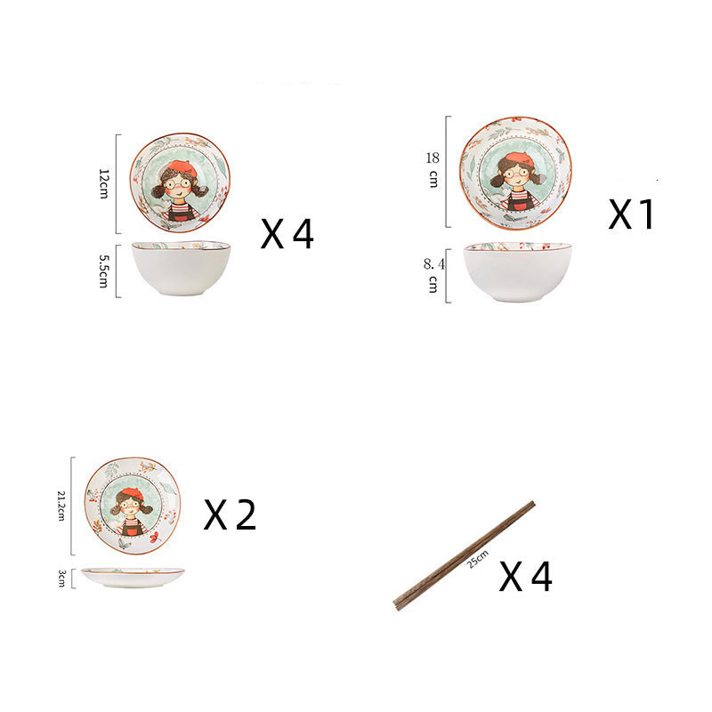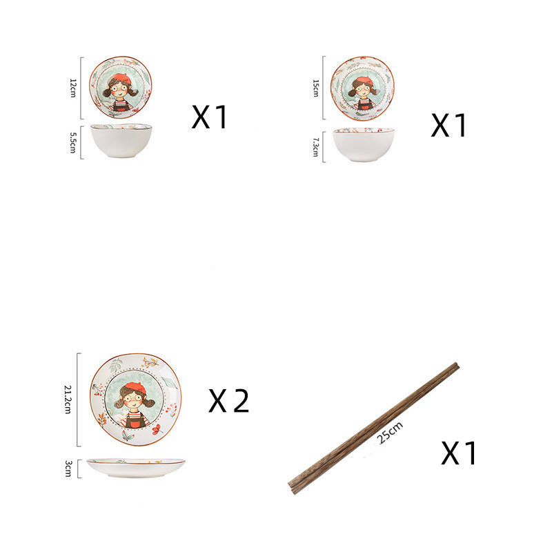 Bowl×1, plate×1, chopsticks×1 pair, plate×1