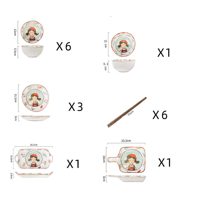 Color: One-person food set, two-person food set, four-person food set, 6-person food set, 6-inch noodle bowl, 7-inch soup bowl, 8.25-inch deep plate, handle plate, 8-inch double-ear deep plate (size includes ears) ), 10 inch deep plate with double ears (size including ears), large rectangular plate, double ears baked rice plate, 4.75 inch rice bowl 1 pack, small soup spoon, sauce plate
