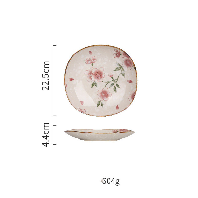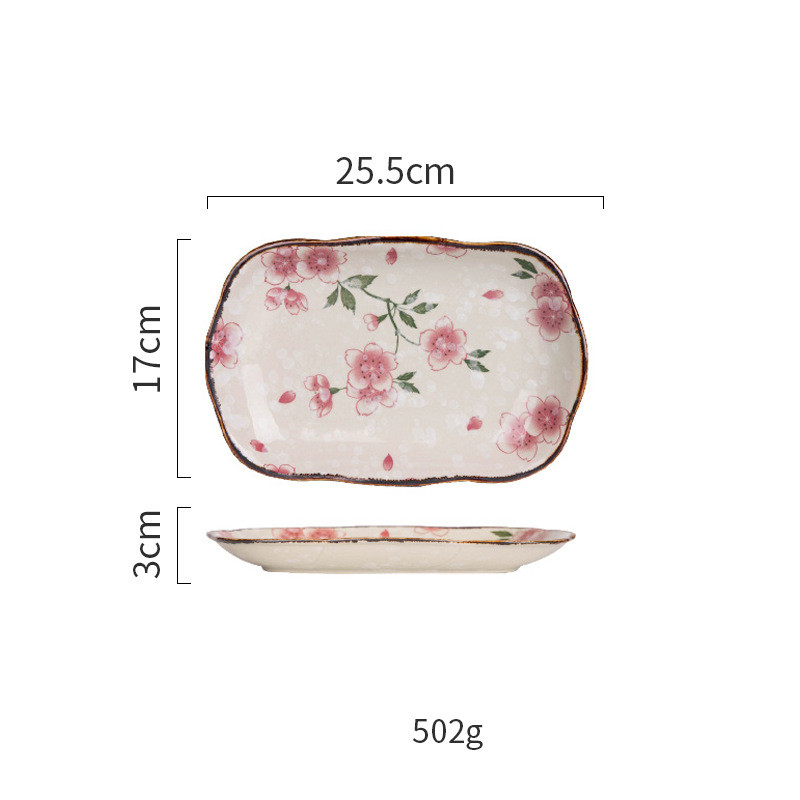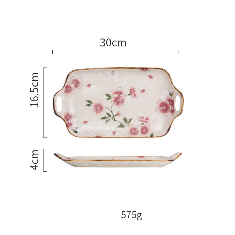 P: Dancing Sakura 11.8-inch Square Ear Long Plate