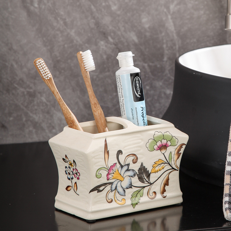 Ceramic Toothbrush Holder Storage Box Cover Couple Clothes