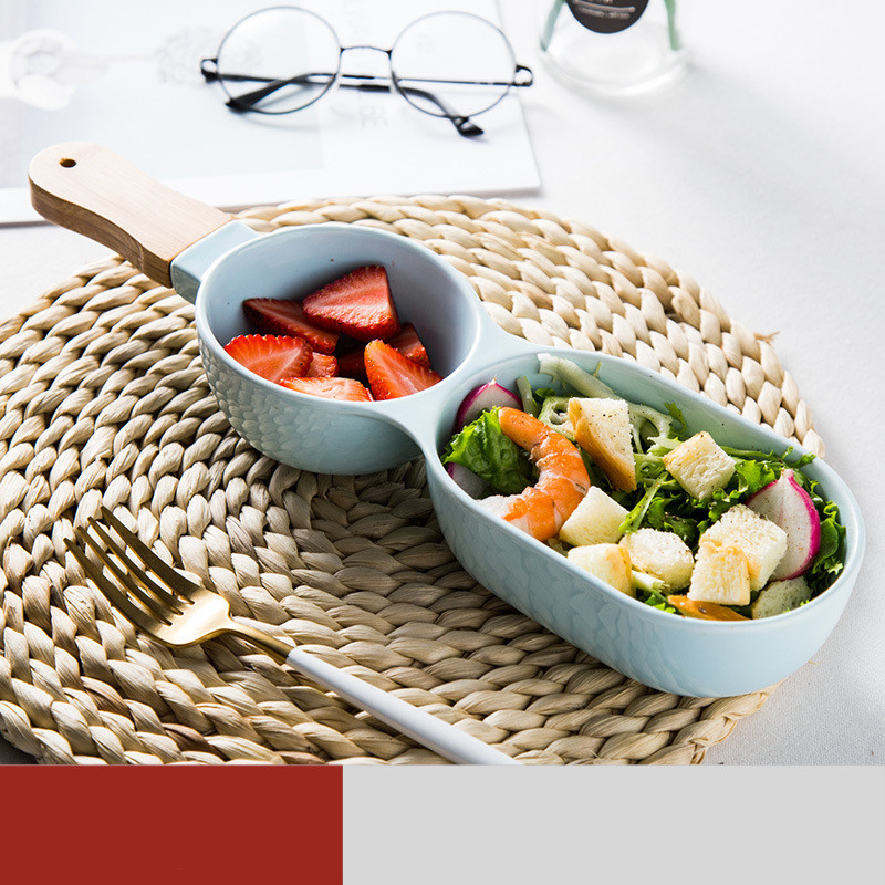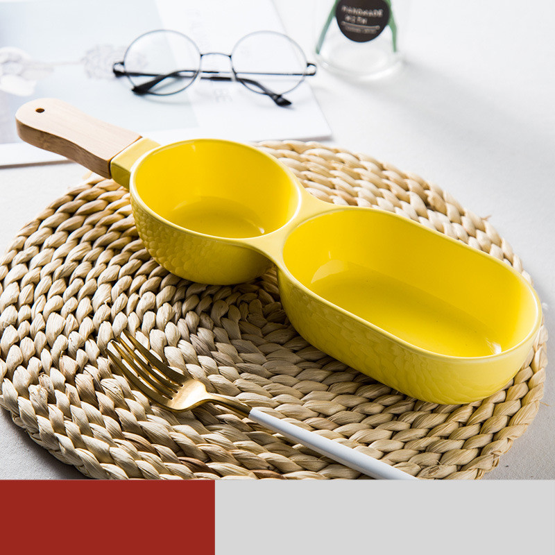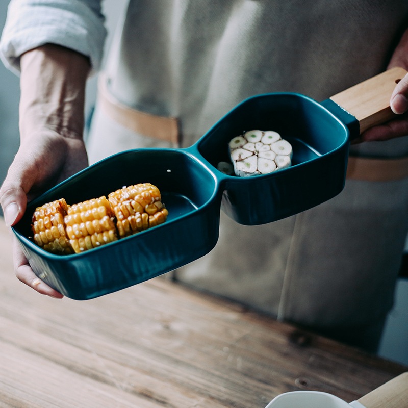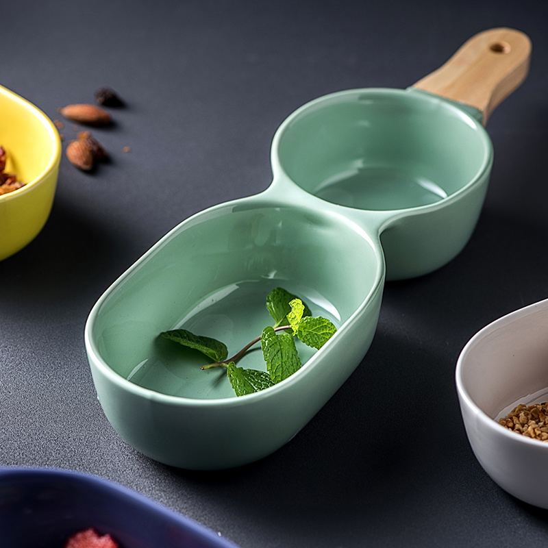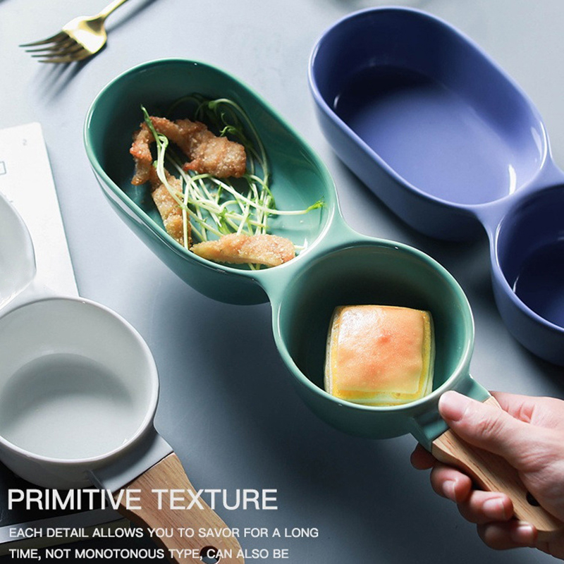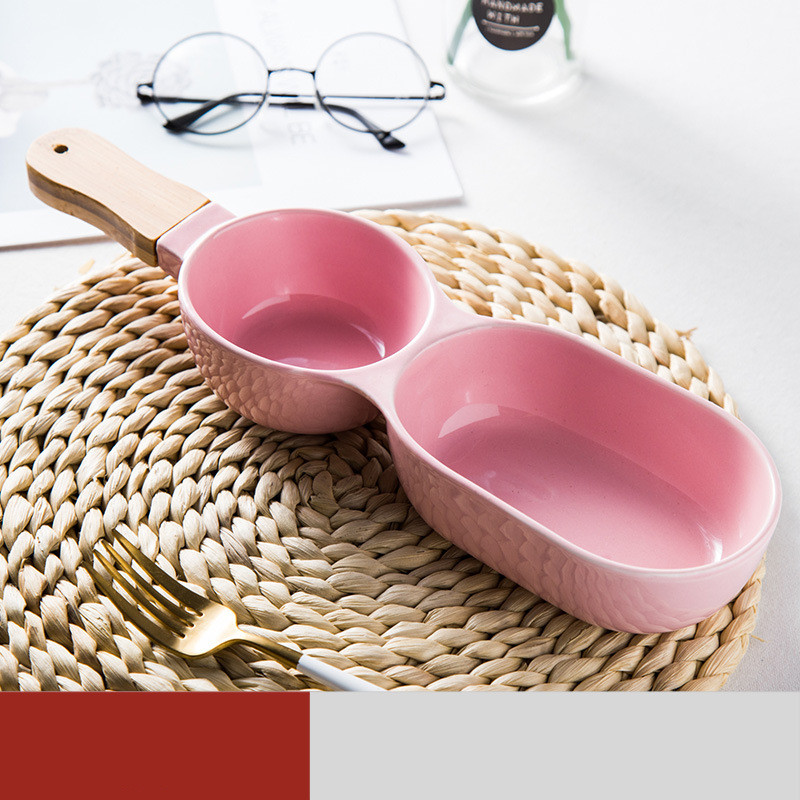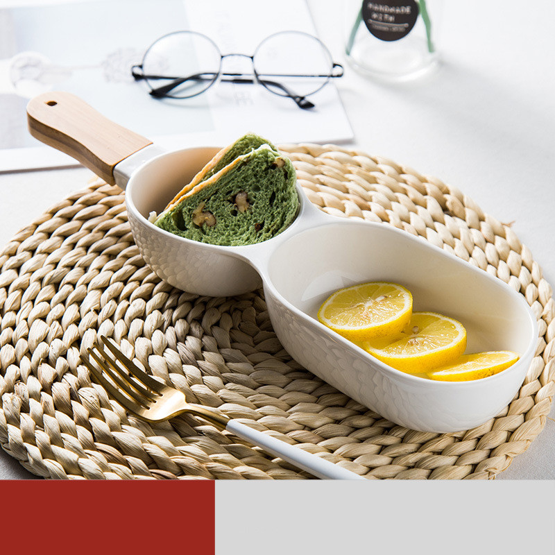 Ceramic two compartment dividing bowl with handle