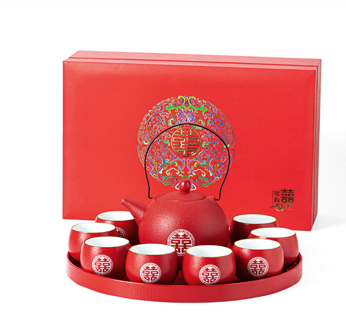 8style:1 pot and 8 cups stoneware lifting beam pot + disc extra-large gift box