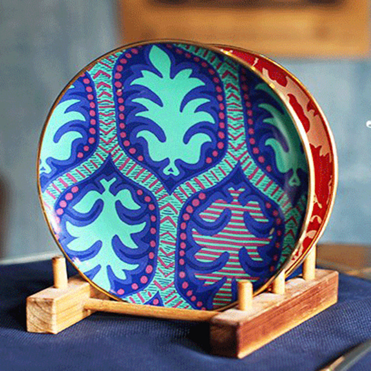 Color: Bohemian Ceramic Plate-Blue, Bohemian Ceramic Plate-Orange, Bohemian Ceramic Plate-Pink, Can Be Customized