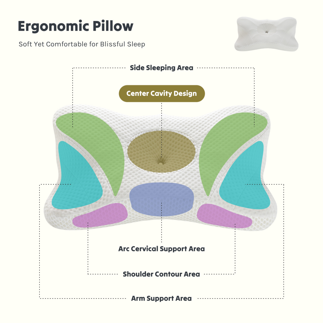 【A Sleep Savior Really Helps】The ergonomically designed Adopt partition structure cervical neck pillow support your head, neck, shoulders, and back perfectly. By combining the benefits of a traditional bed pillow and a contour pillow, our ergonomic pillow is here to transform your sleep experience. The center cavity design properly cradles your head, naturally fits your neck's curve, and aligns your spine, allowing the entire body spine to be more efficiently supported, stretched, and relaxed.