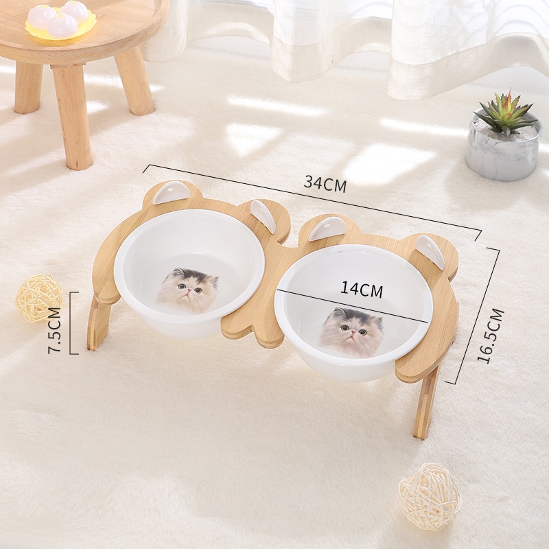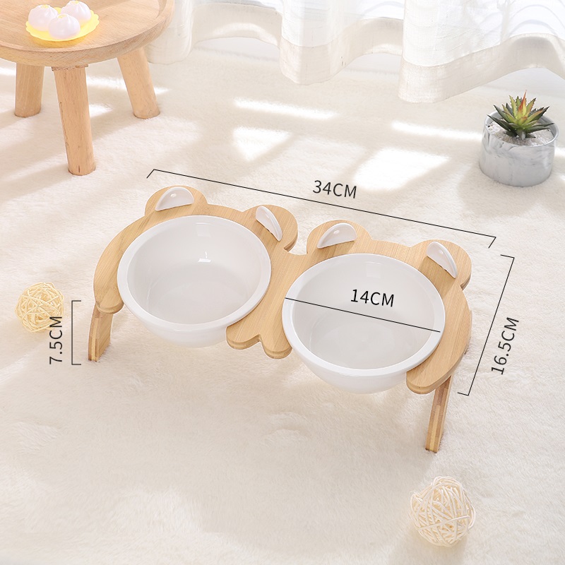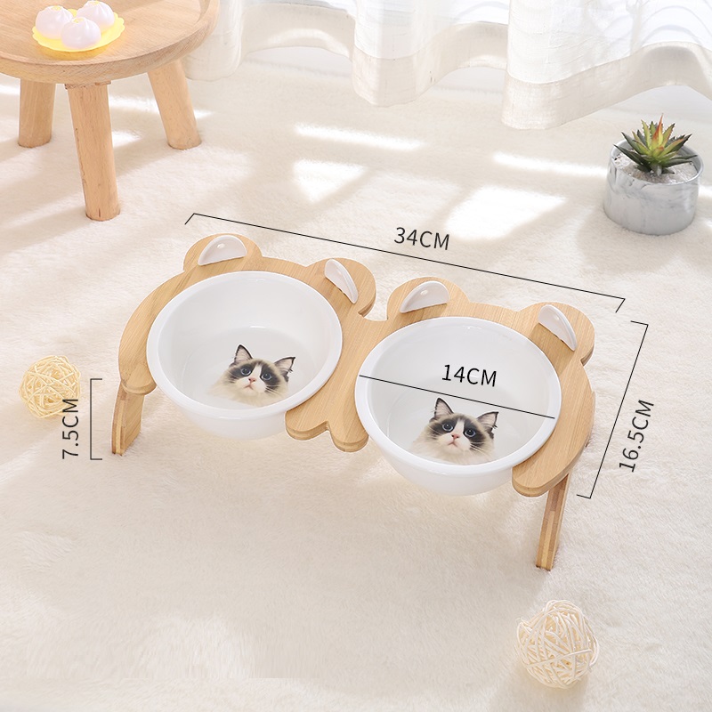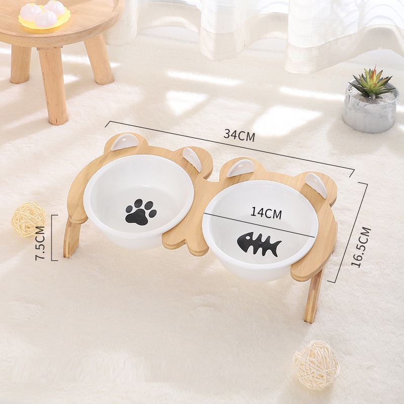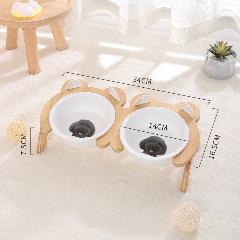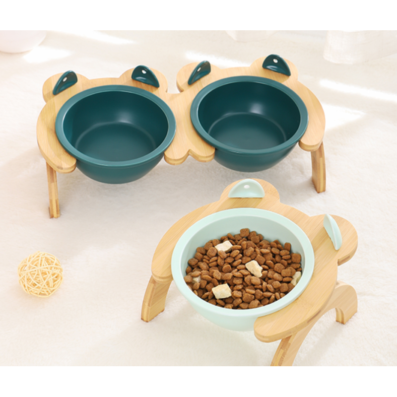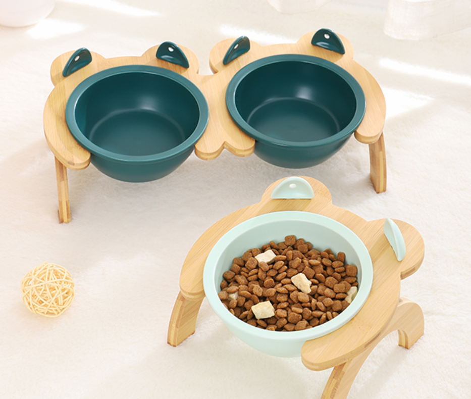 Name: Tall Bamboo Wood Feeding Bowl