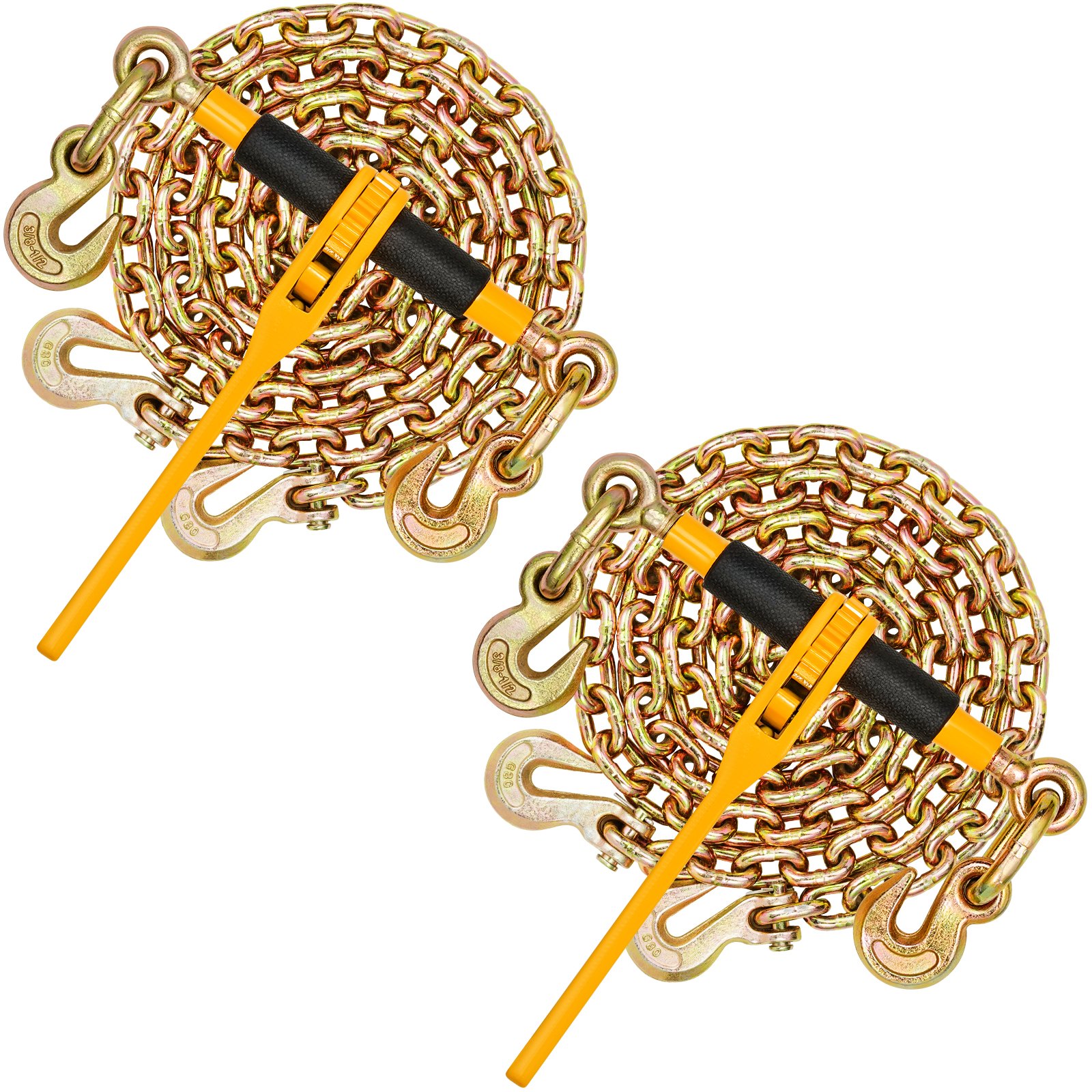 9200 lbs/4172 kg Strong Load Capacity: Crafted from durable cast steel, our trailer binder supports up to 9200 lbs/4172 kg, designed for resilience under heavy loads. It includes a tough Grade 80 chain with a 3/8" diameter and a 10 ft/304.8 cm length, ensuring breaking strength of 30000 lbs/13600 kg.