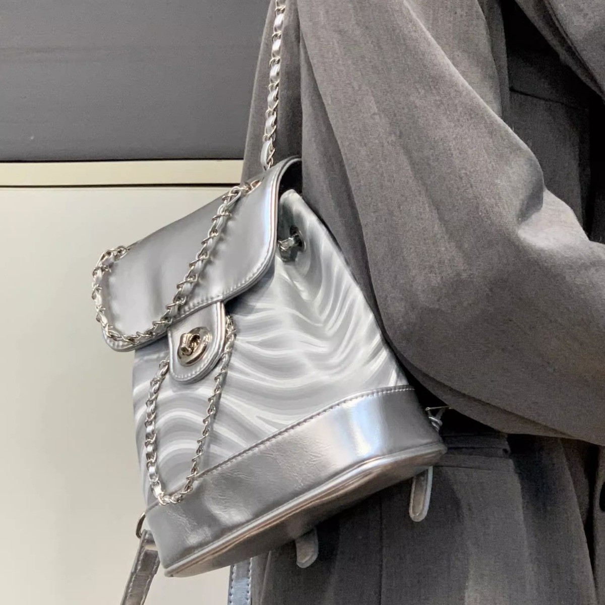 Product information:Lining texture: Polyester Color: silver bags Applicable Gender: Female Function: Waterproof Material: PU