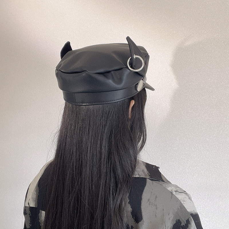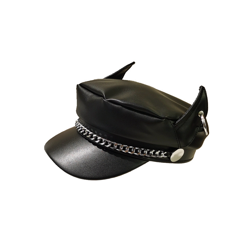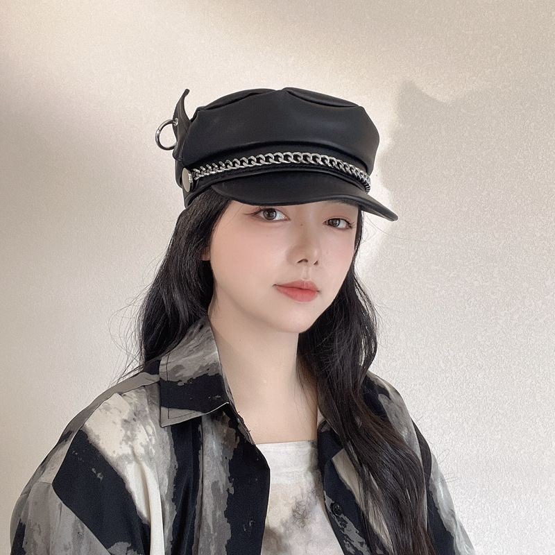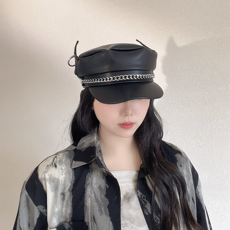 Chain Dog Ears Peaked Cap Female Autumn And Winter PU