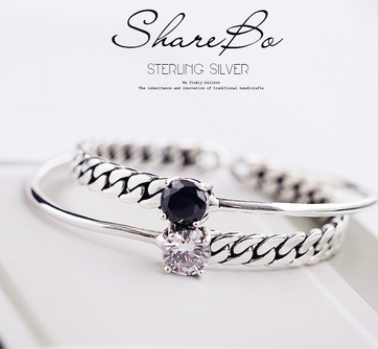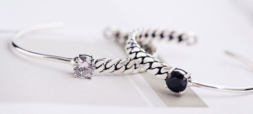 Chain four claw black onyx zircon vintage bracelet