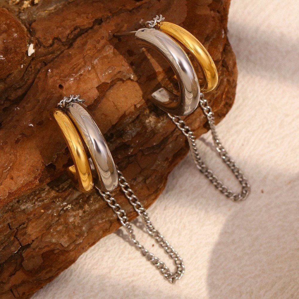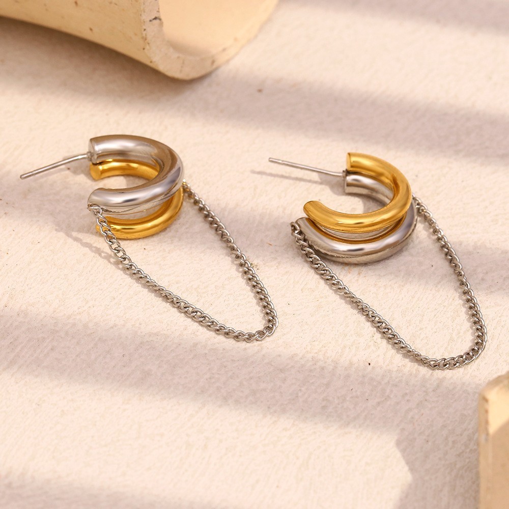 Product information:Color: two-tone earringsApplicable people: womenMaterial: CopperShape: GeometricStyle: net red wind