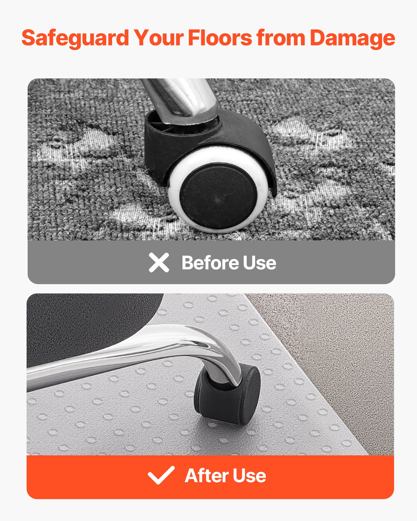 Ideal Fit for Desks: The 36 x 48-inch (915 x 1225 mm) rectangular rolling chair mat features unique extended edges, allowing it to securely fit under your desk and maximize your workspace