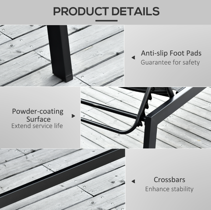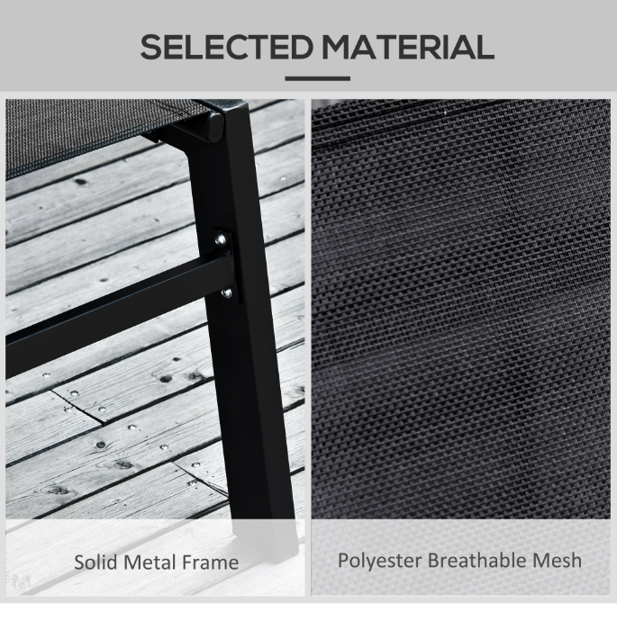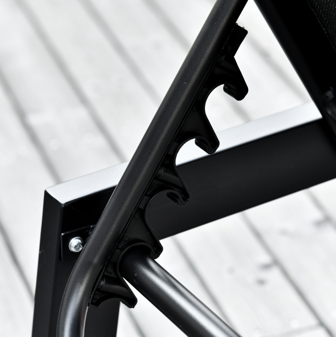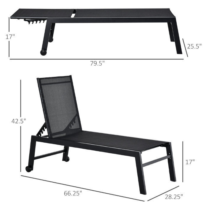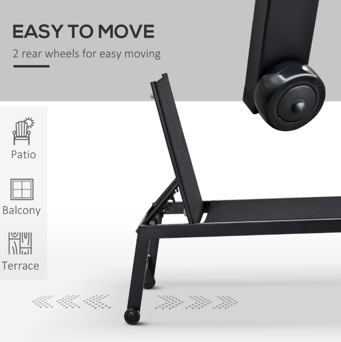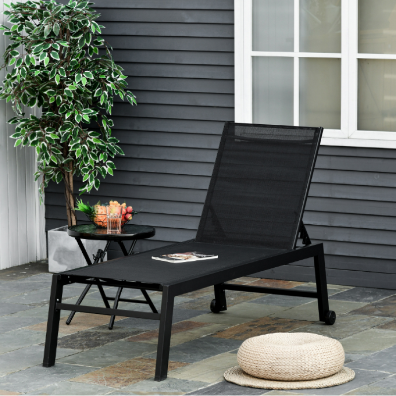Chaise Lounge Chair Black With Wheels Adjustable Backrest Breathable For Sunbathing Patio