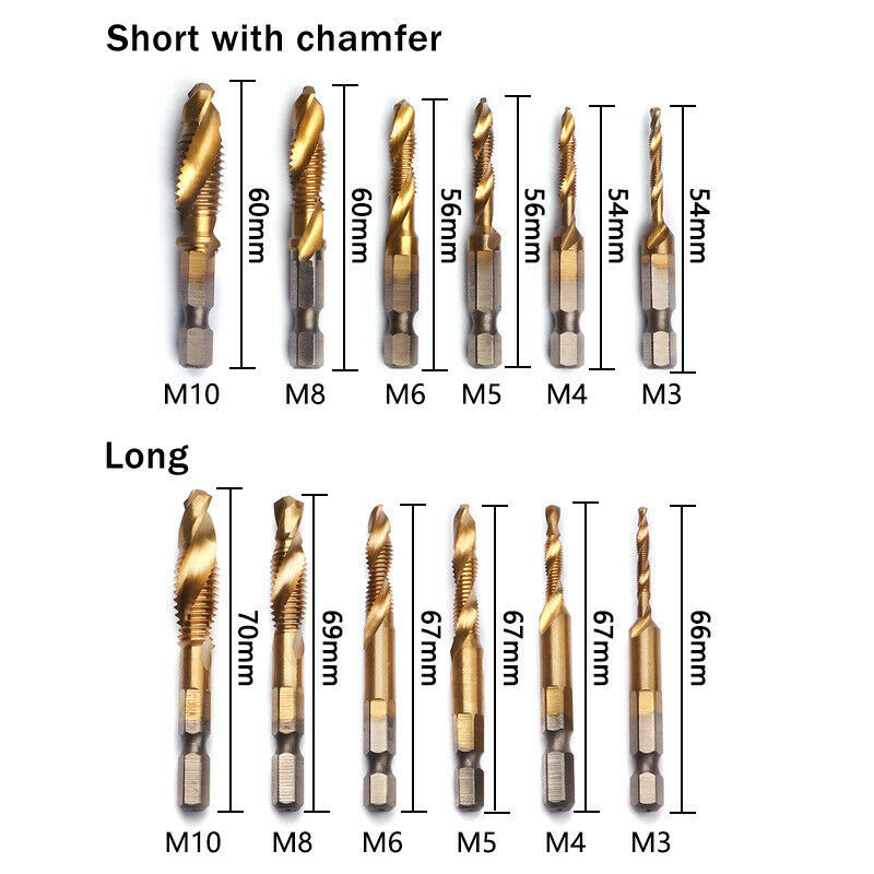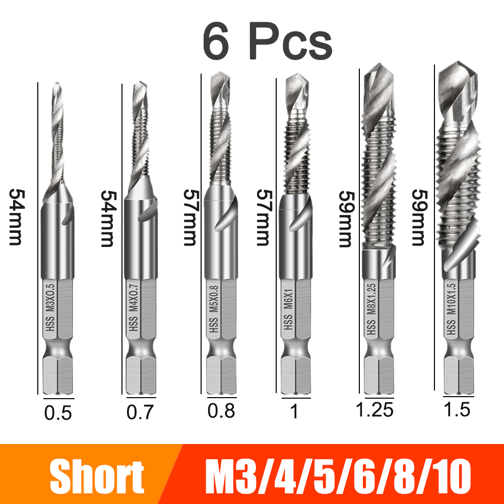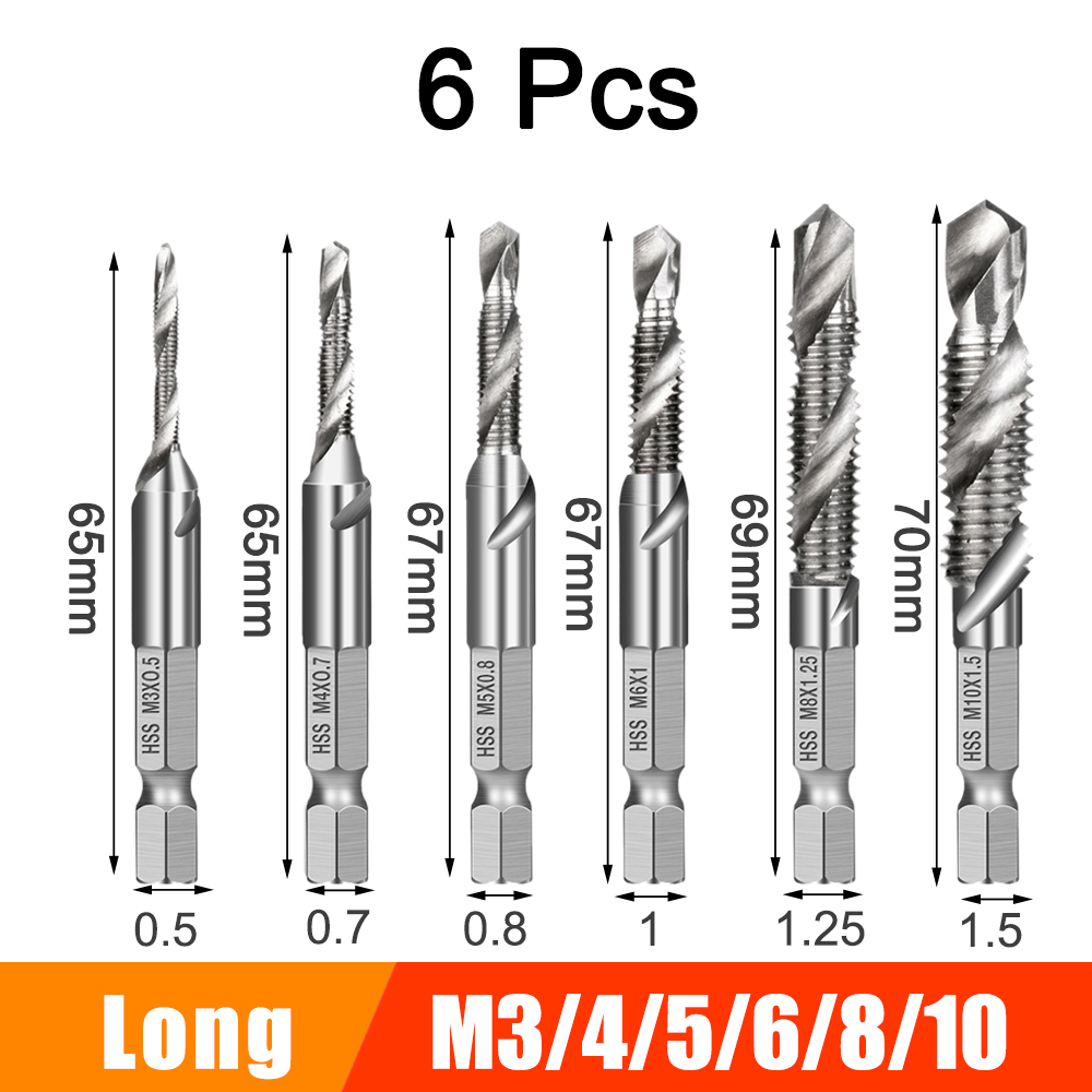 Specifications: Metric 6PC: M3*0.5mm, M4*0.7mm, M5*0.8mm, M6*1mm, M8*1.25mm, M10*1.5mm