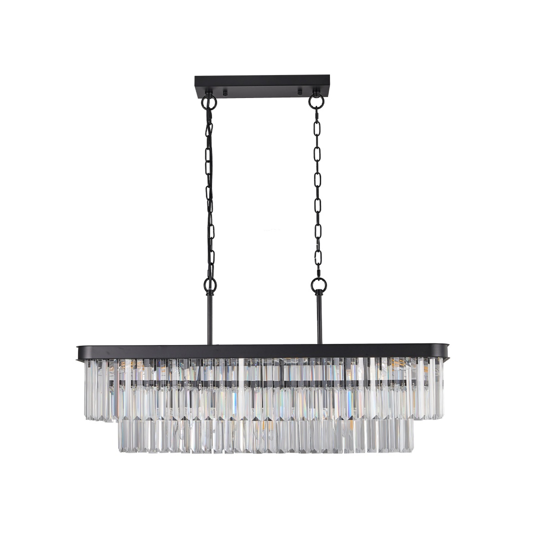 Chandeliers,Rectangular Crystal Chandelier Adjustable,E12 Modern Industrial Crystal Lights,Farmhouse Iron Ceiling Hanging Light For Kitchen Living Room Bedroom-Black Bulb Not Included