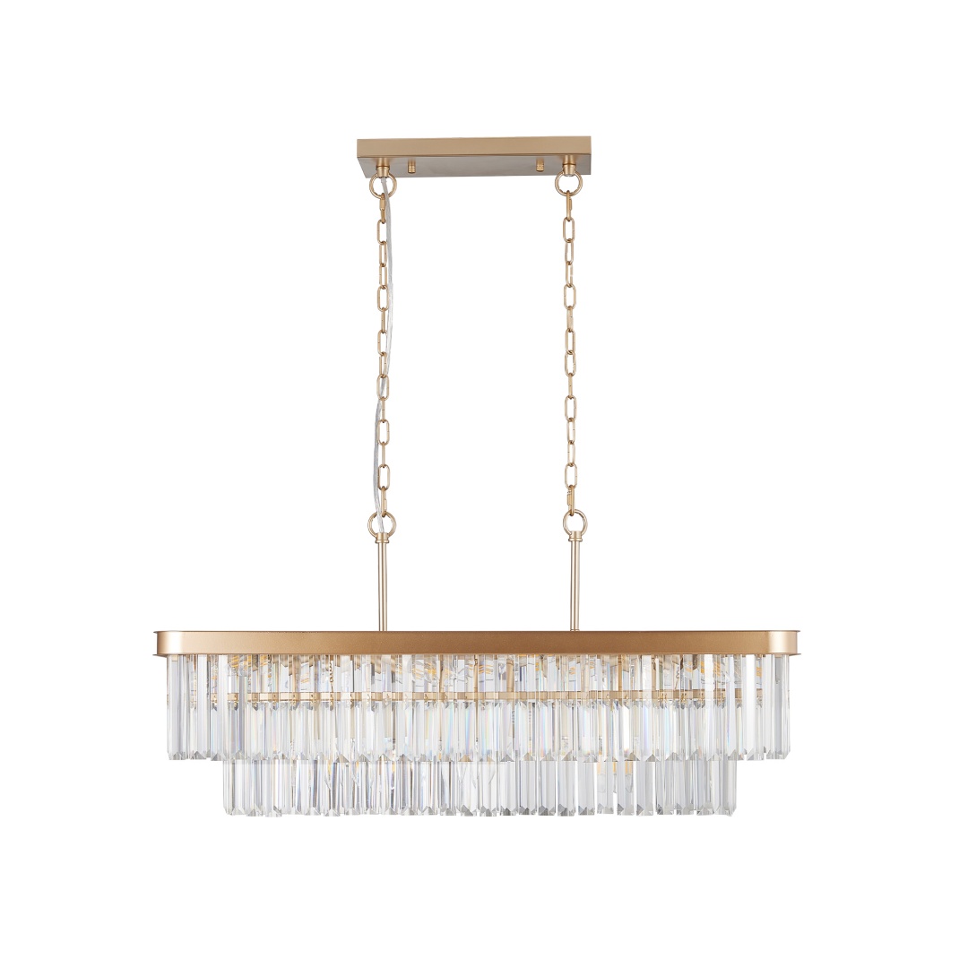 Crystal Light Material:Iron and Transparent Crystalng,Sustainable,Rust and Corrosion.Sparkling Crystal Rod Which Has a Glass Touch and Feeling Make It Uneasy to Break,The Modern Crystal Chandelier Quality is Guaranteed.Size:L33.5" W11" H10.2",Height Adjustable.High-End Luxurious Crystal Lampshade,Looks Modern and Chic.Combined with Modern Industrial Style and Mid-Century Style,Lights Looks More Luxurious.Bulb Requirement:eleven E12 Lamp Holders,Sand Durable,Long Life,Compatible with Incandescent Lamp,Energy-Saving Lamp,Led.Crystal Chandelier Providing Ample Illumination to Your Room.Application:Crystal Chandeliers Adds Modern to Any Interior with Its Trendy Look,To Lighting Living Room,Dining Room,Bedroom,Kitchen,Hotel,Restaurant,Etc.And is Also a Fashionable Decoration for Home.Easy Installation:The Crystal Light Fixture is Hard Wired,The Installation Instructions and All Fittings Are Included,The Crystals Securely Wrapped,We Recommend to Find a Professional Electrician for Installation.