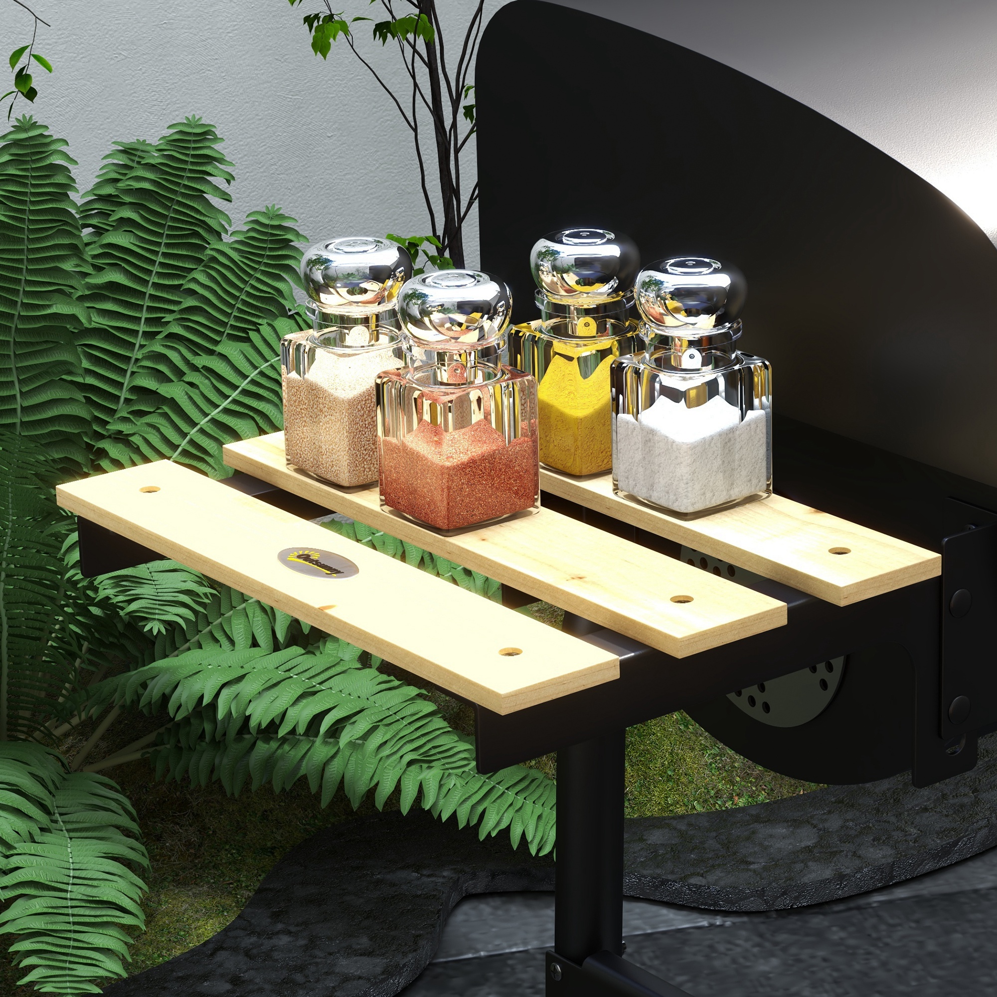 Get friends together and enjoy food from your own personal BBQ! This grill has enough room to cook four burgers and four hot dogs. The lid is fitted with a thermometer, so you can see the inside temperature. Control the smoke and heat with the adjustable vents and chimney. Powder coated metal shell withstands up to 600℃.