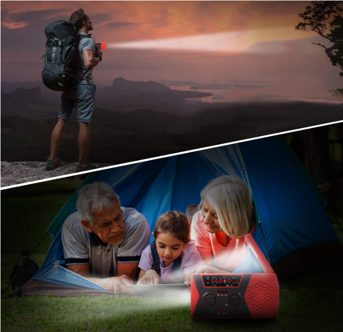 (12) 1 minute hand-cranking supports over 20 minutes radio play time / over 30 minutes of continuous torch light / 5 minutes cell phone talk time.