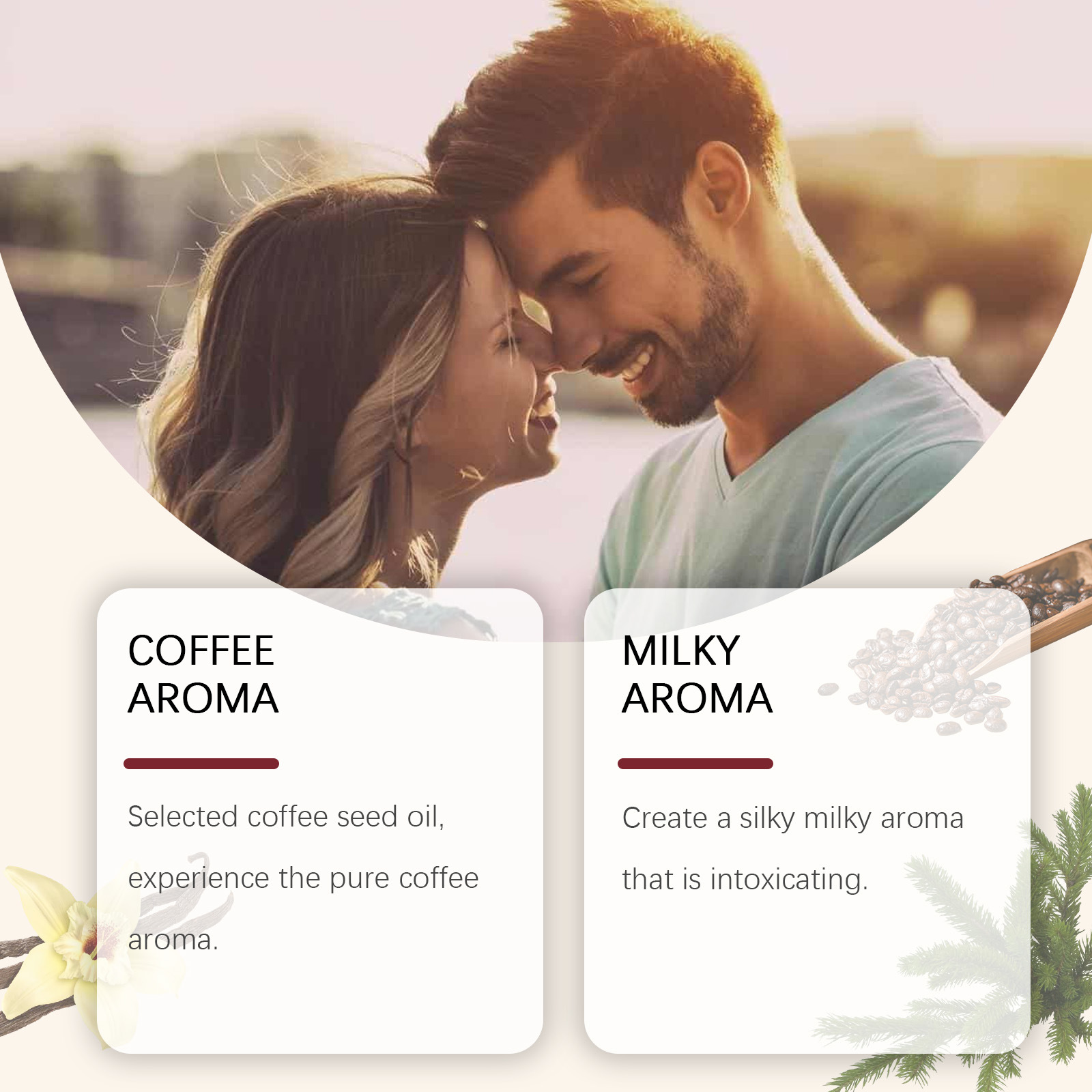 Ingredients: coffee seed oil, hydrolyzed milk protein, vanilla fruit oil, Cedar peel oil, caramel