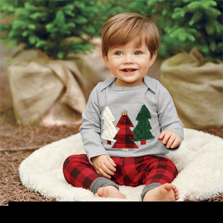 外贸童装 男童圣诞树格子裤童装 纯棉中小童套装ebay