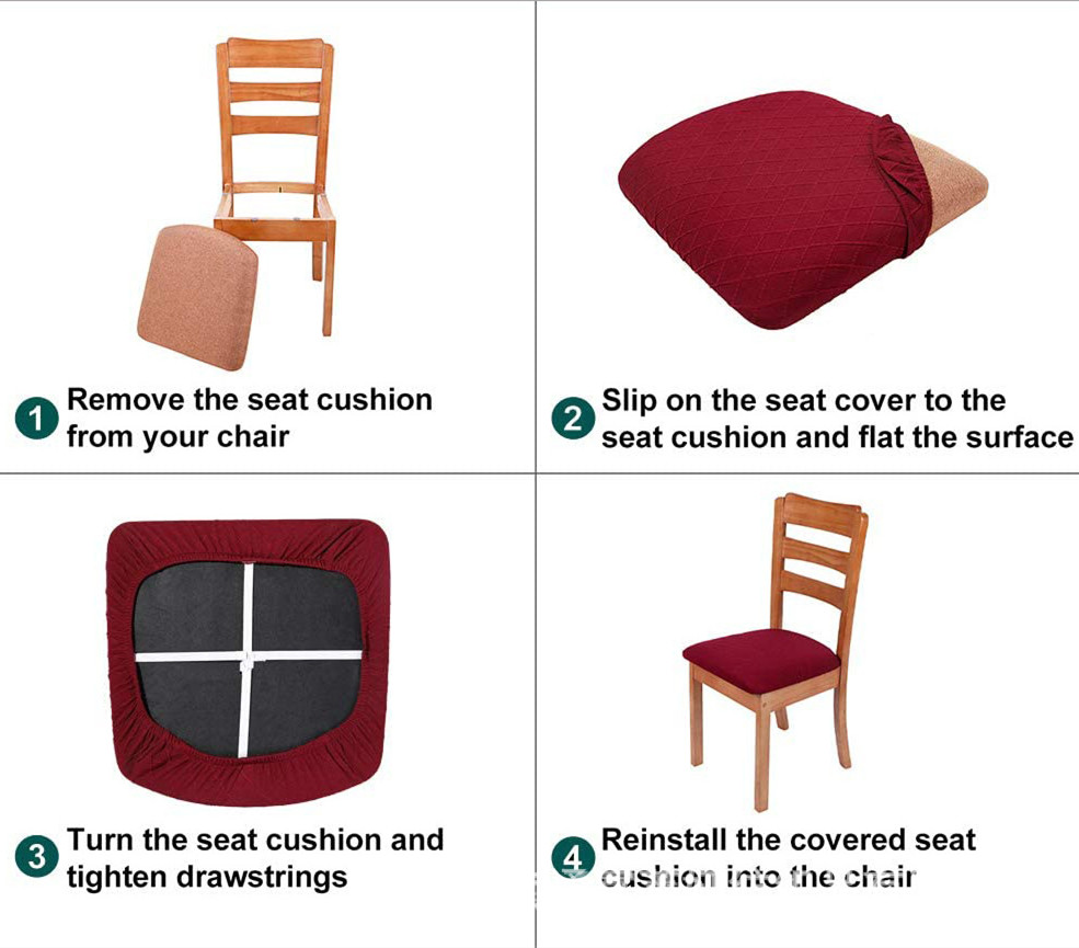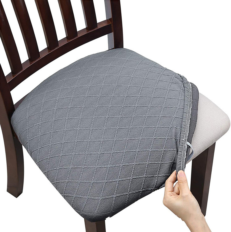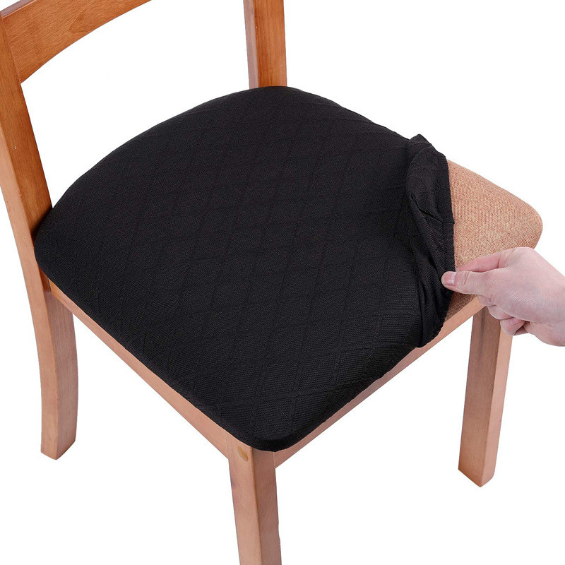Checker Thickened Solid Color Elastic Office And Household Hotel Jacquard Dining Chair Seat Cover