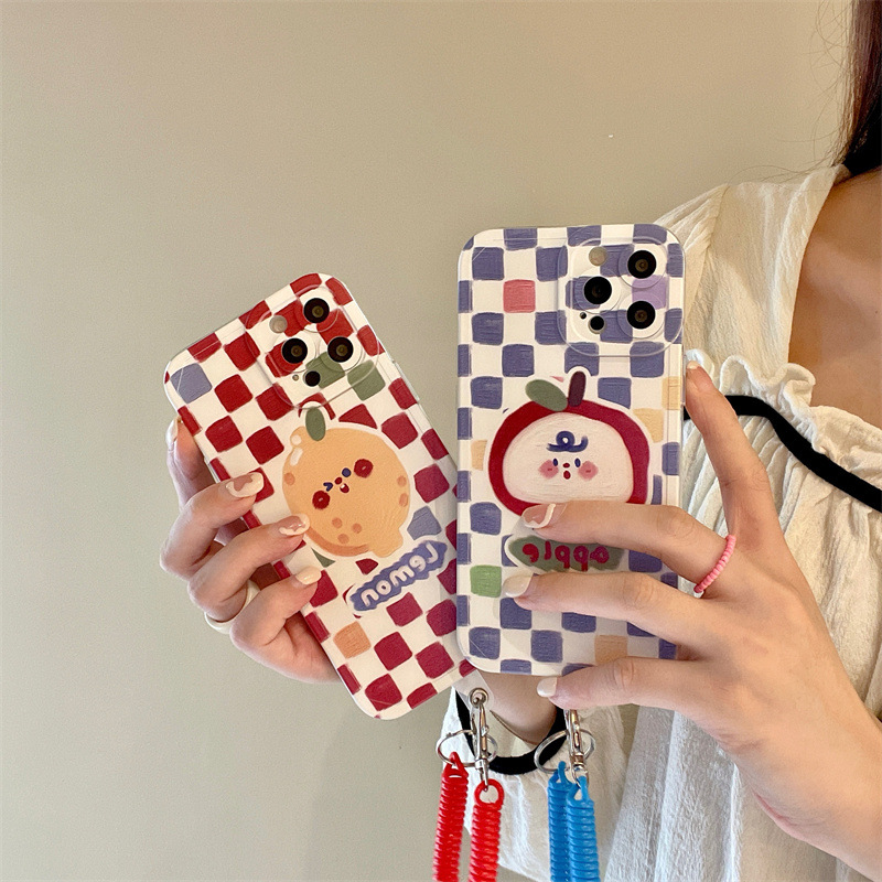 Color: chessboard lemon spring lanyard blue, chessboard lemon spring lanyard red