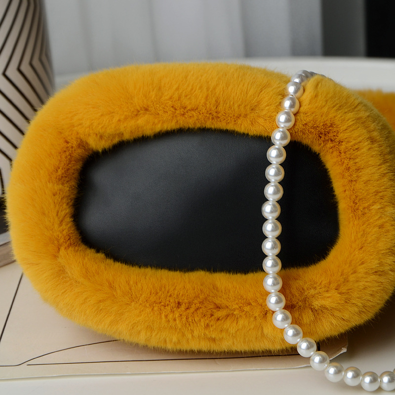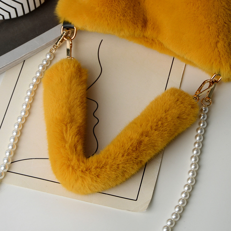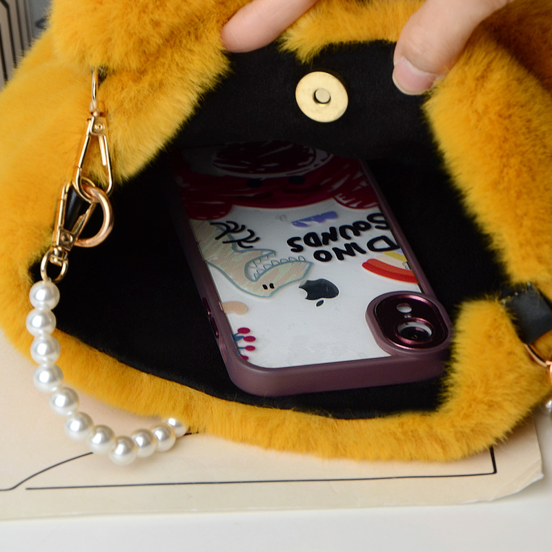 Checkerboard Plush Bucket Bag With Pearl Chain Design Winter Fashion Luxury Handbags For Women Personalized Shopping Shoulder Bags