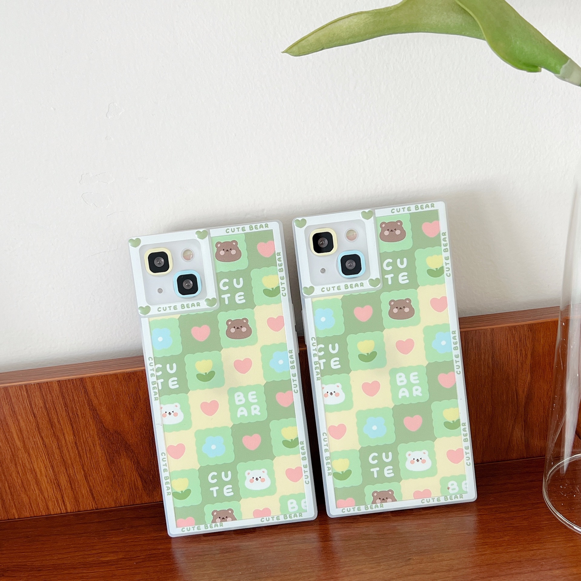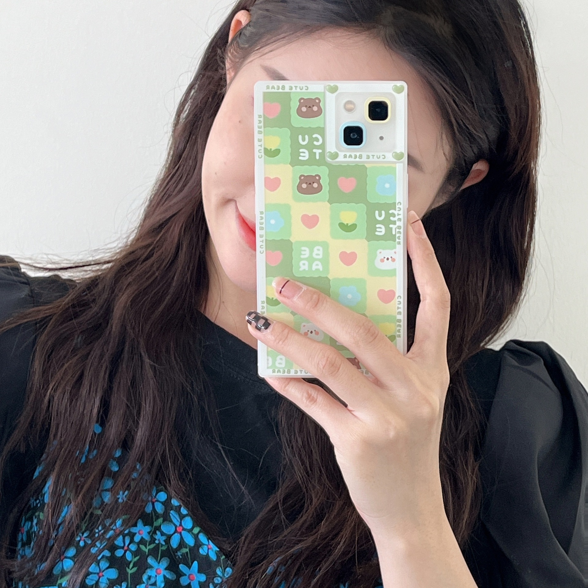 Colour:BK square color-blocked bear flower