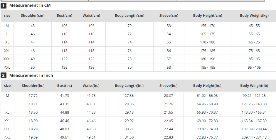 Size: M L XL 2XL 3XL 4XL