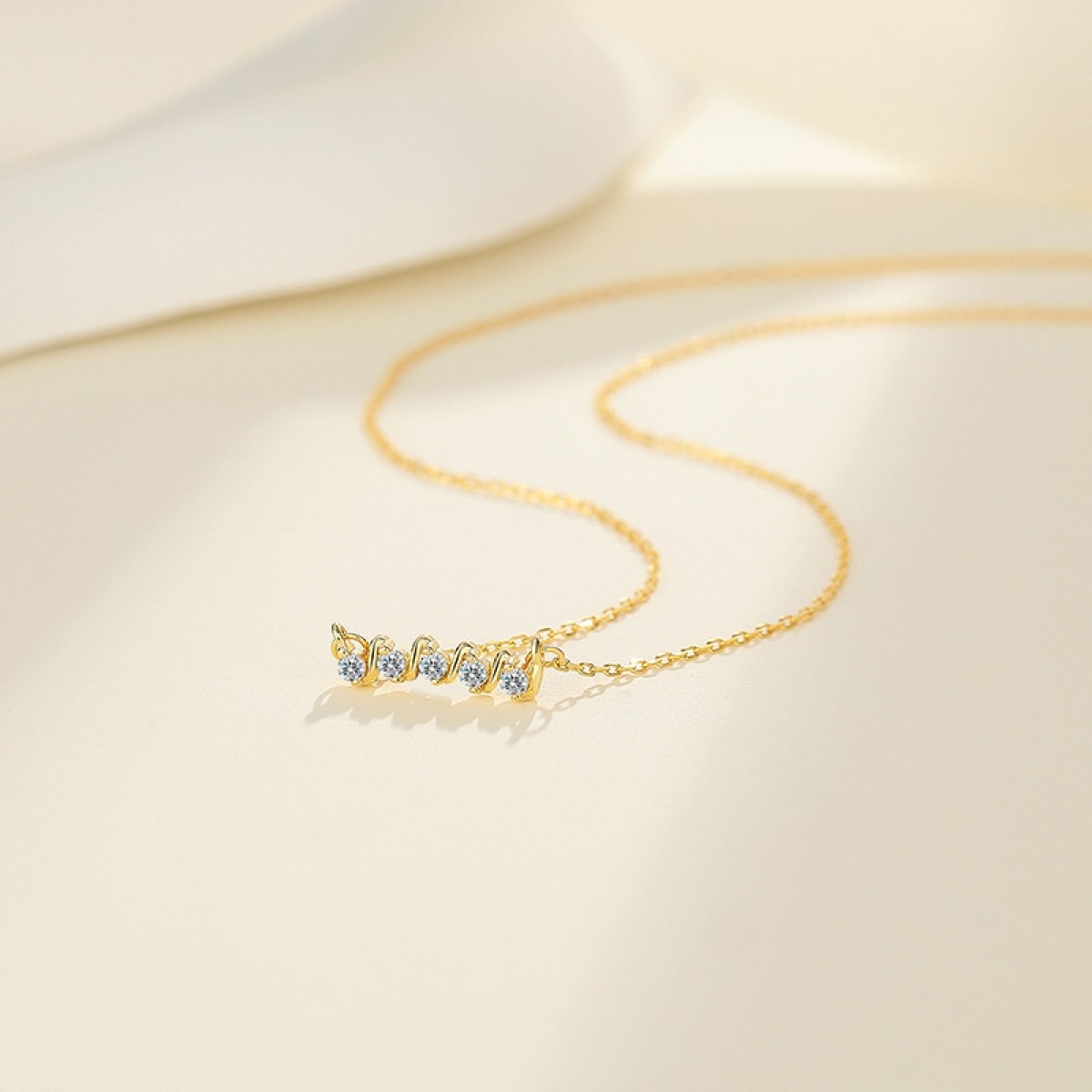 Color: moissanite spiral necklace-white gold color, moissanite spiral necklace-Yellow Gold